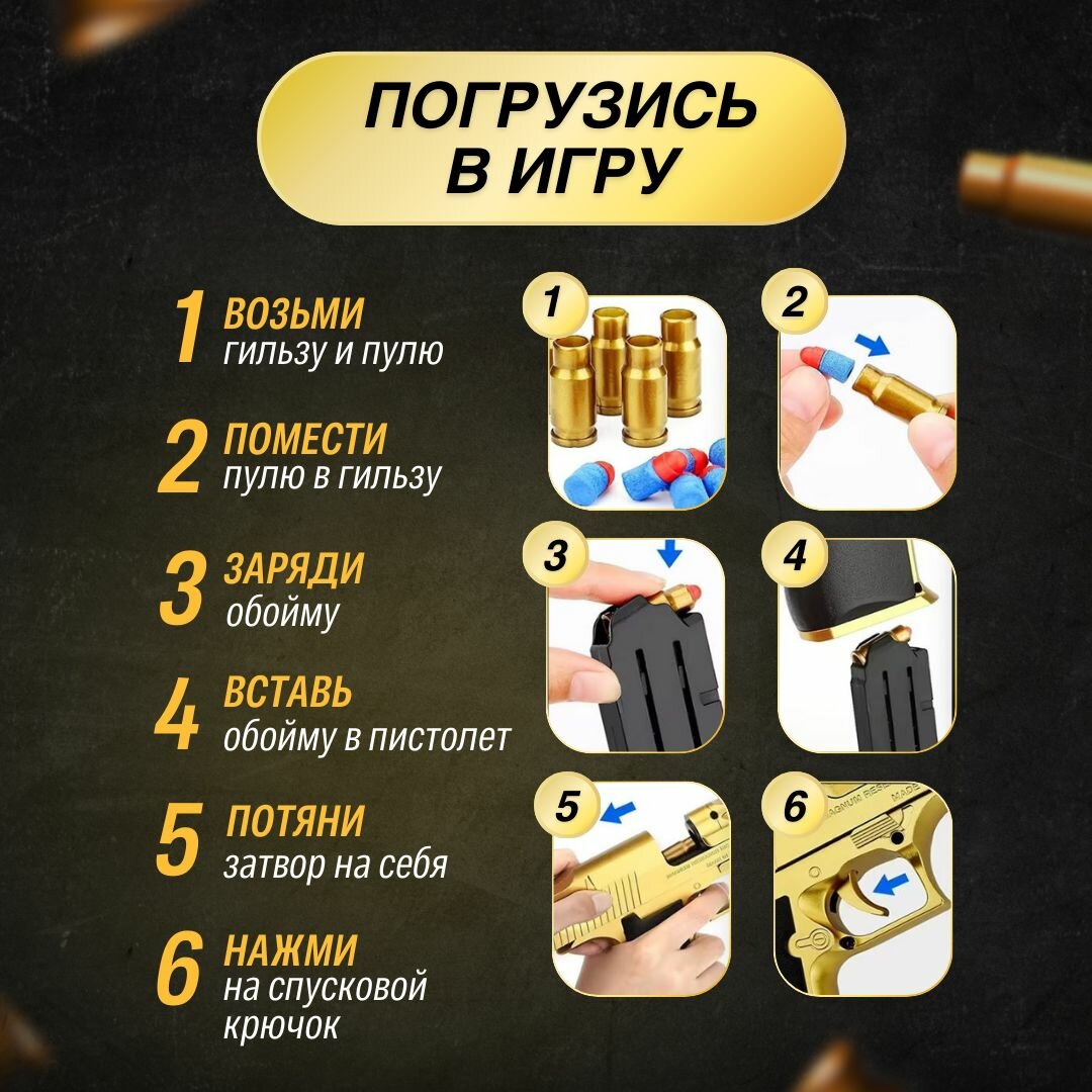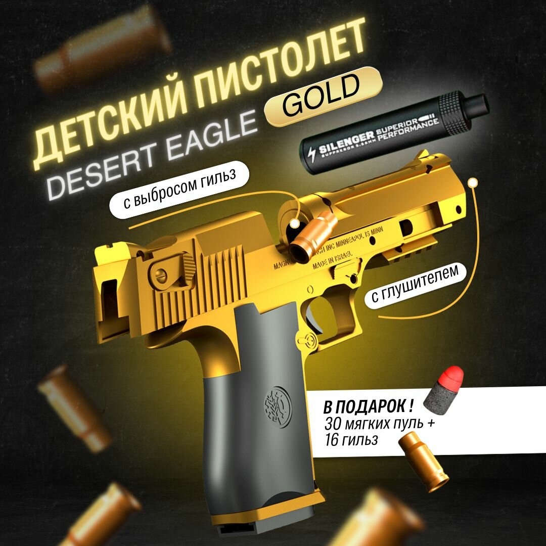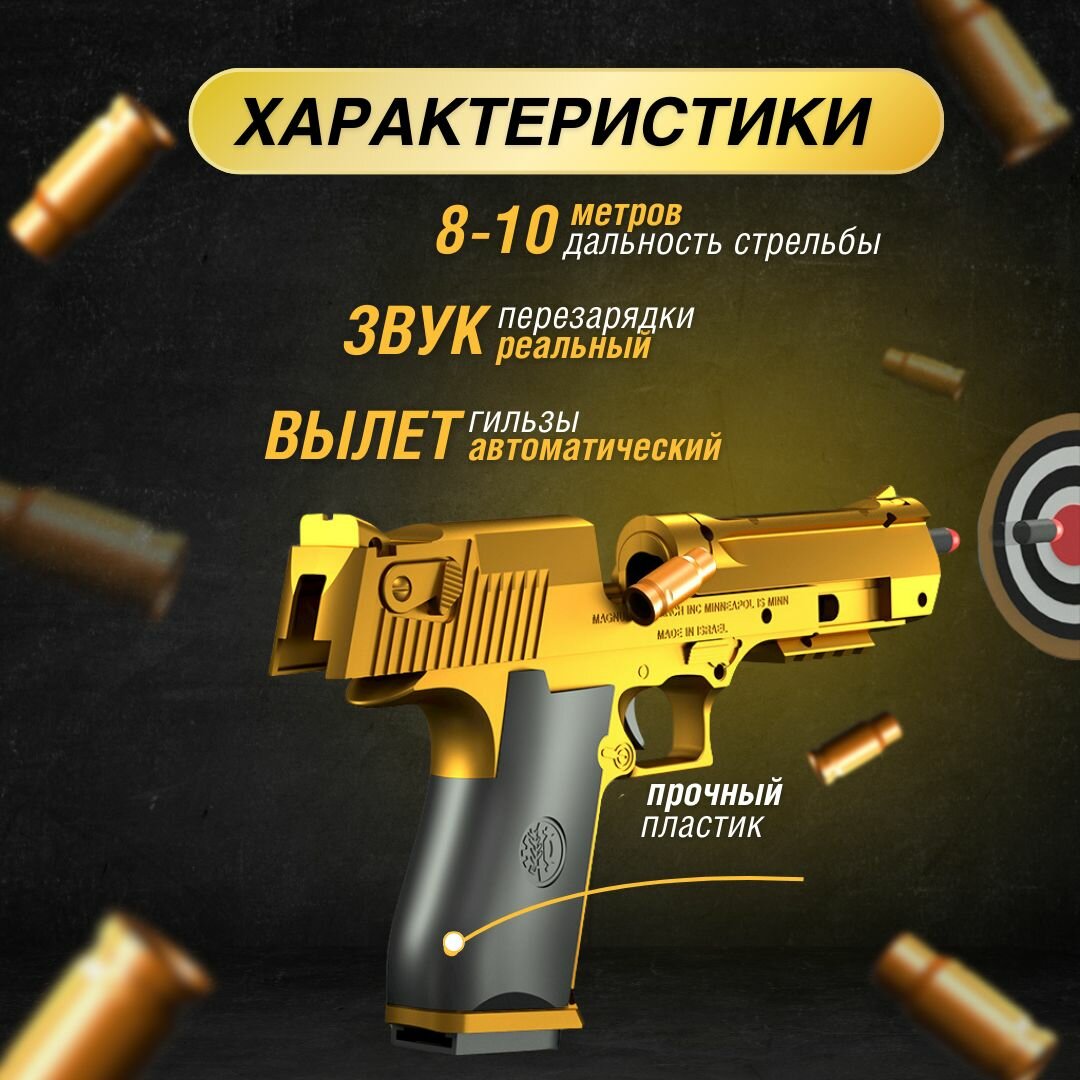 Пистолет игрушечный с пульками и гильзами Desert Eagle интересное: