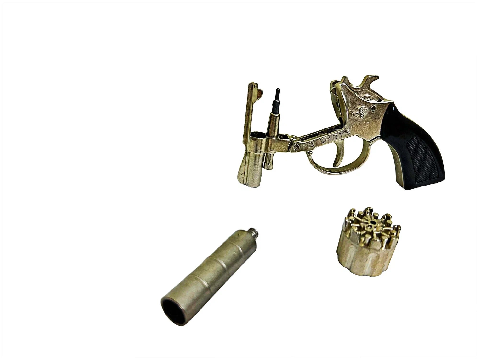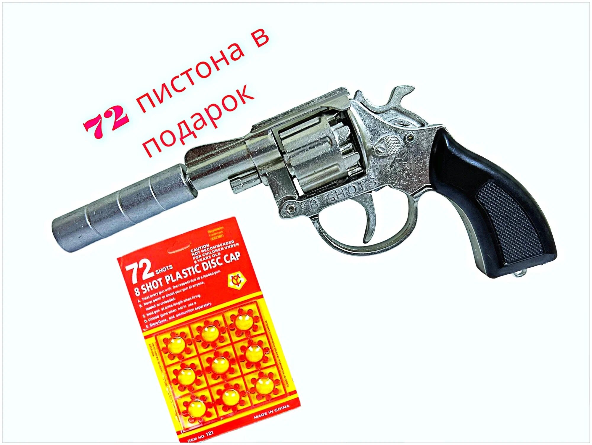 Детский металлический револьвер-пугач с глушителем (8 зарядов),пистоны интересное: