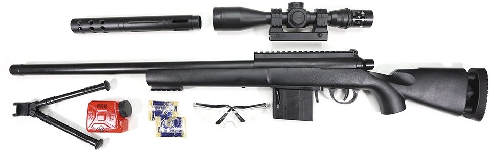 | Комплектация | винтовка; - очки; - сошки; - оптический прицел; - пламегаситель; - стартовый комплект шаров. |