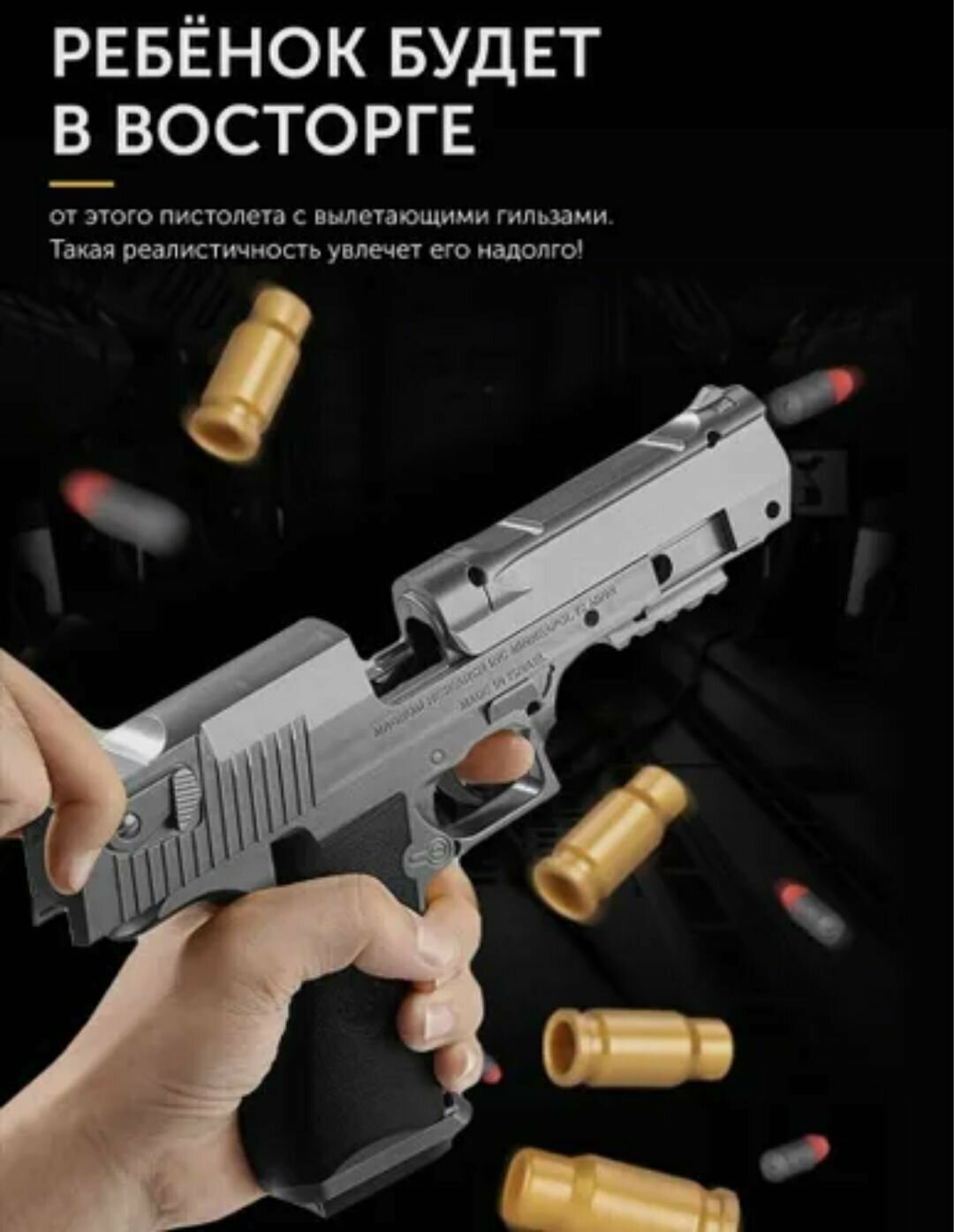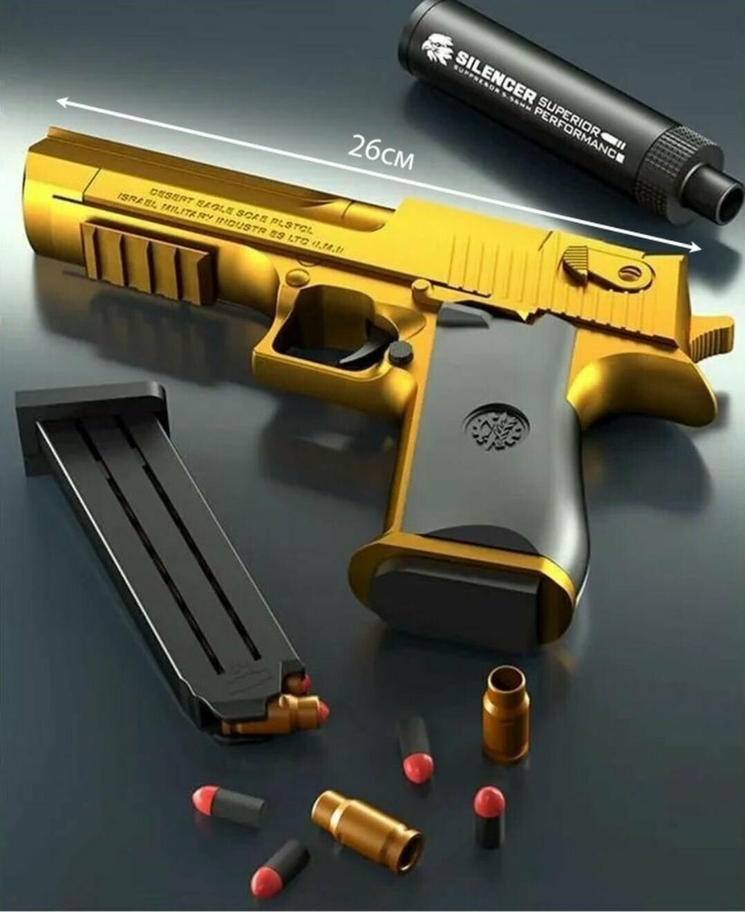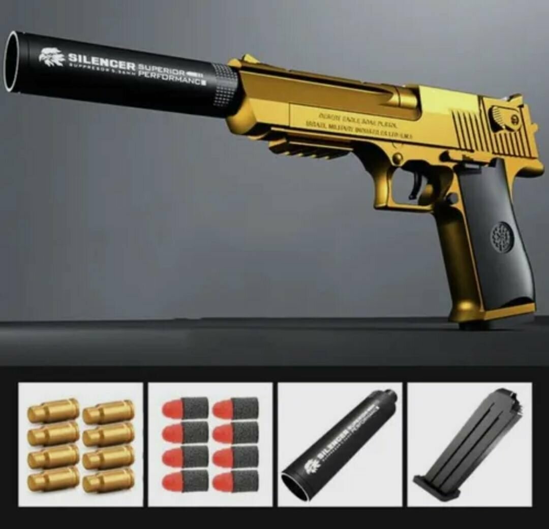 Пистолет с мягкими пулями пустынный орел Ю9-52, игрушечное оружие, с гильзами и глушителем интересное:
