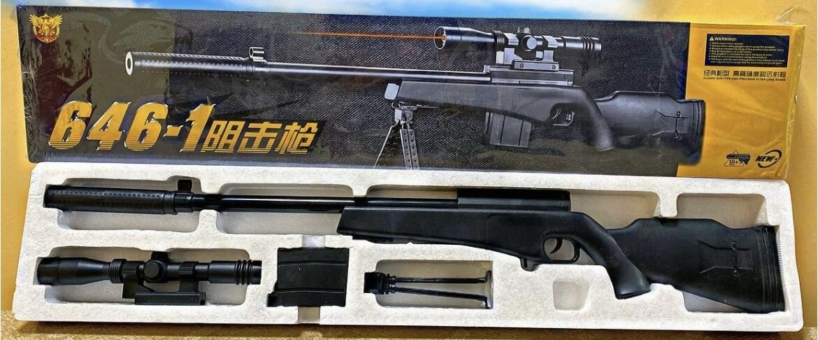 Ниже Вы можете прочитать отзывы на Детская снайперская винтовка M24 пневматическая с оптическим прицелом, 96см, автомат стреляет пульками (в коробке), ознакомится с подробными характеристиками, посмотреть интересные обзоры и фотографии на Детская снайперская винтовка M24 пневматическая с оптическим прицелом, 96см, автомат стреляет пульками (в коробке).
