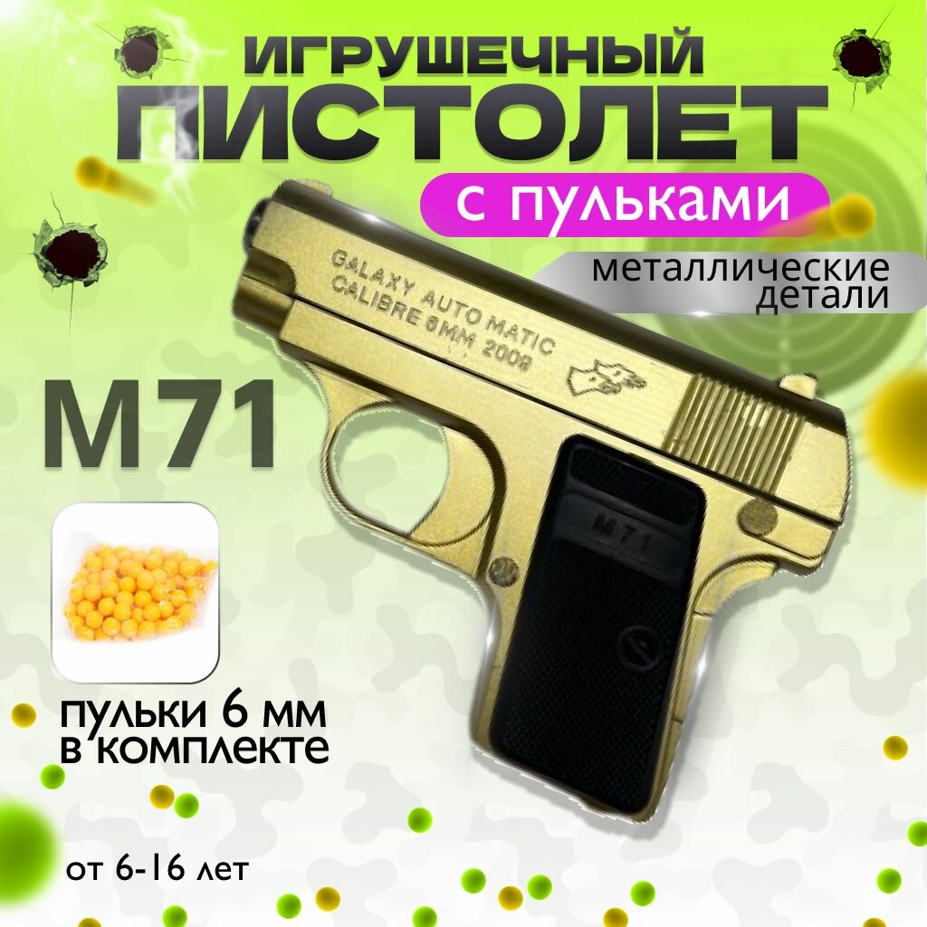 Купить Пистолет игрушечный Colt M71 Gold металлический, детский пневматический пистолет с пластиковыми пульками