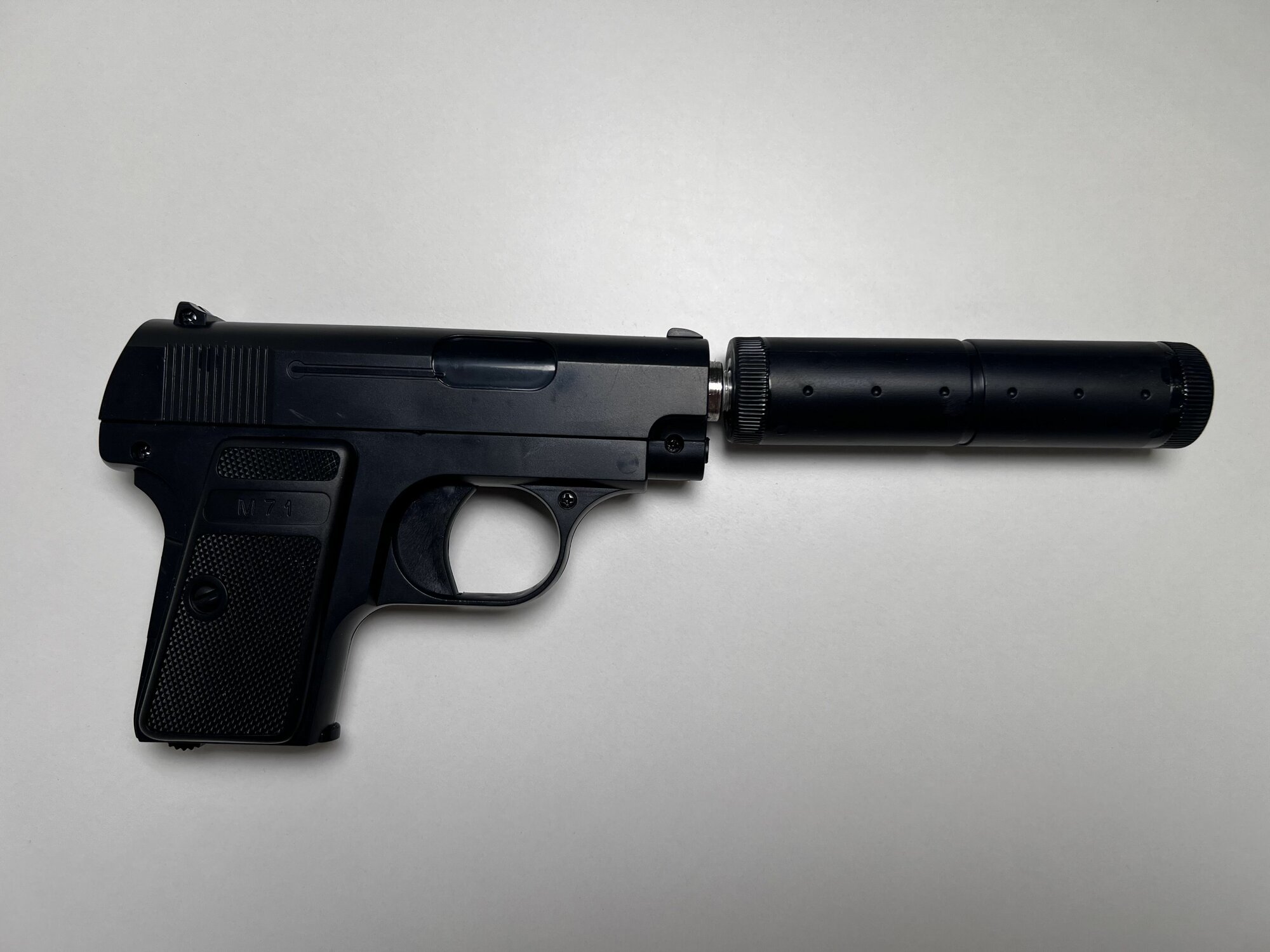 СохранитьПистолет игрушечный Colt M71 с глушителем, металлический, детский пневматический пистолет с пластиковыми пульками интересное: