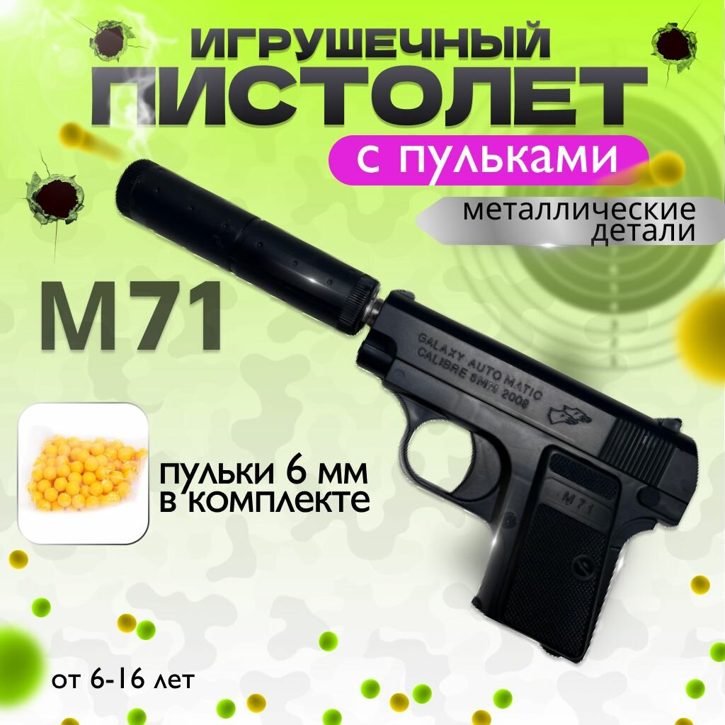 Ниже Вы можете прочитать отзывы на Пистолет игрушечный Colt M71 с глушителем, металлический, детский пневматический пистолет с пластиковыми пульками, ознакомится с подробными характеристиками, посмотреть интересные обзоры и фотографии на Пистолет игрушечный Colt M71 с глушителем, металлический, детский пневматический пистолет с пластиковыми пульками.