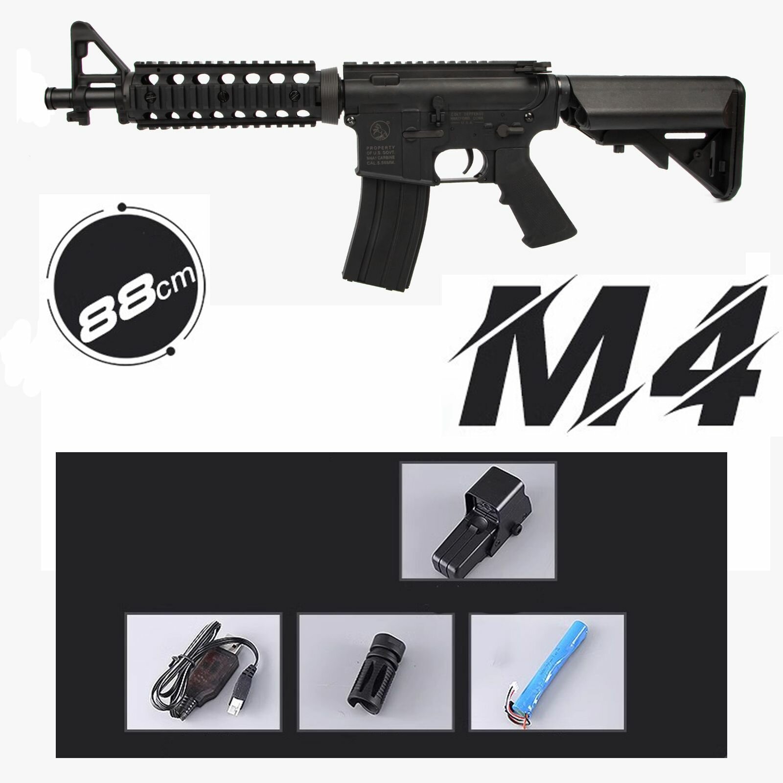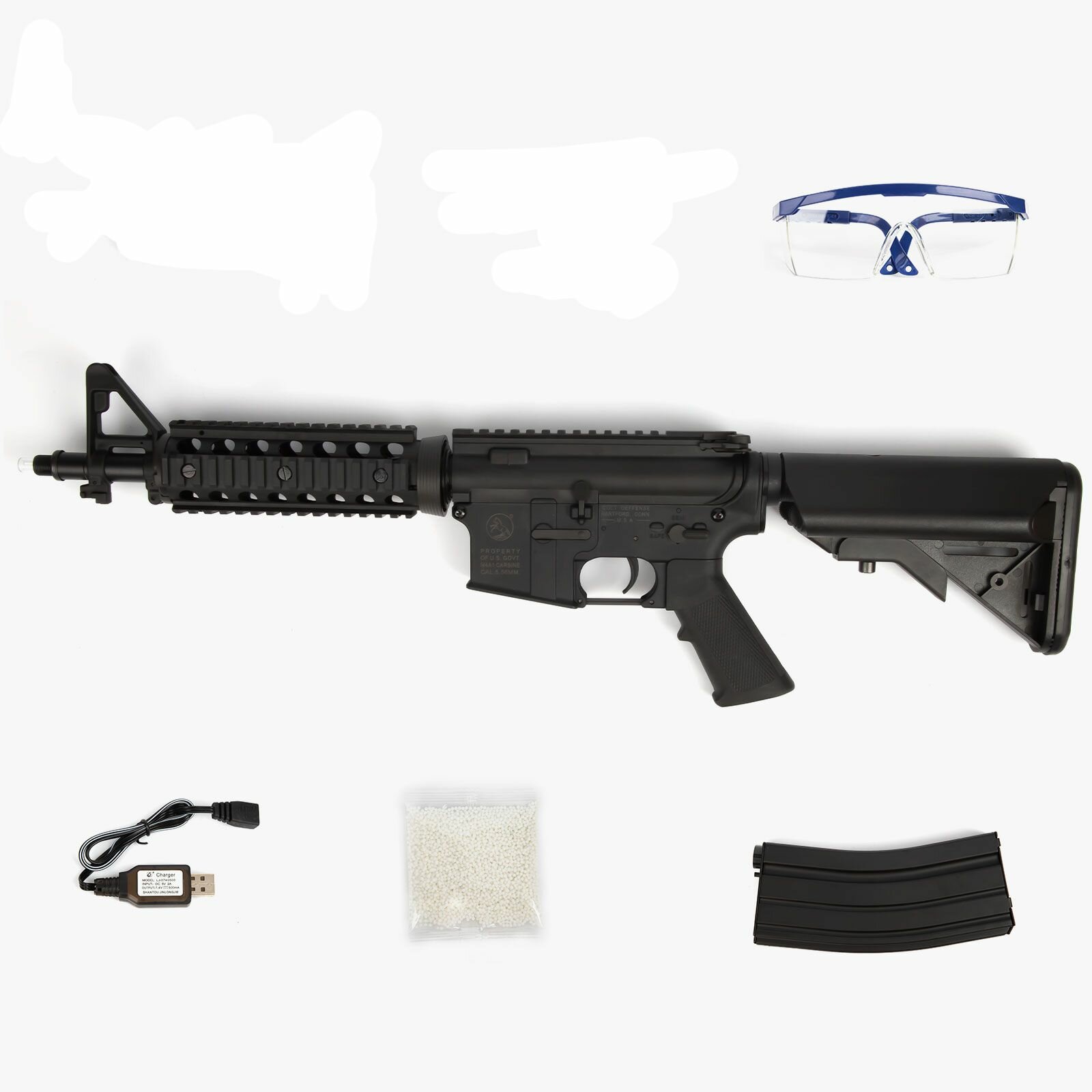 | Комплектация | - автомат; - аккумулятор; - зарядка (USB); - 500 орбиз шаров, -защитные очки; -глушитель; -лазерный прицел |