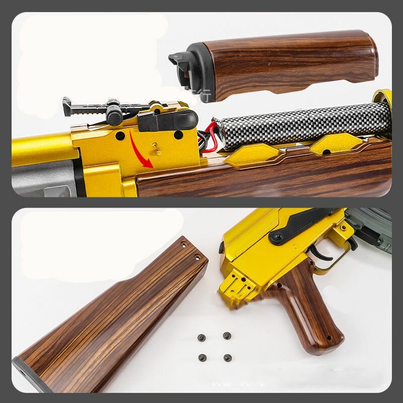 СохранитьГидробольный Орбиз автомат АК-47 стреляет водяными мягкими гелевыми пулями электрический, золотой интересное: