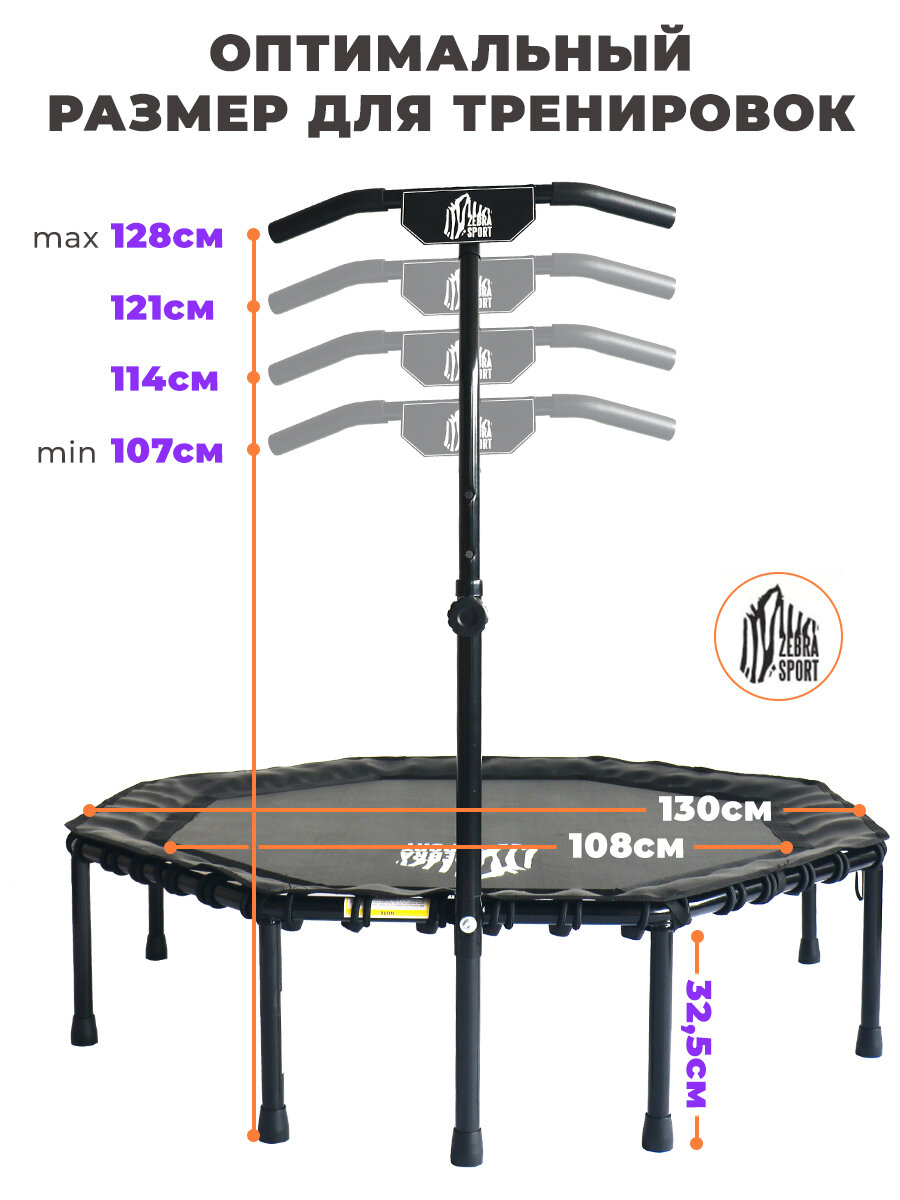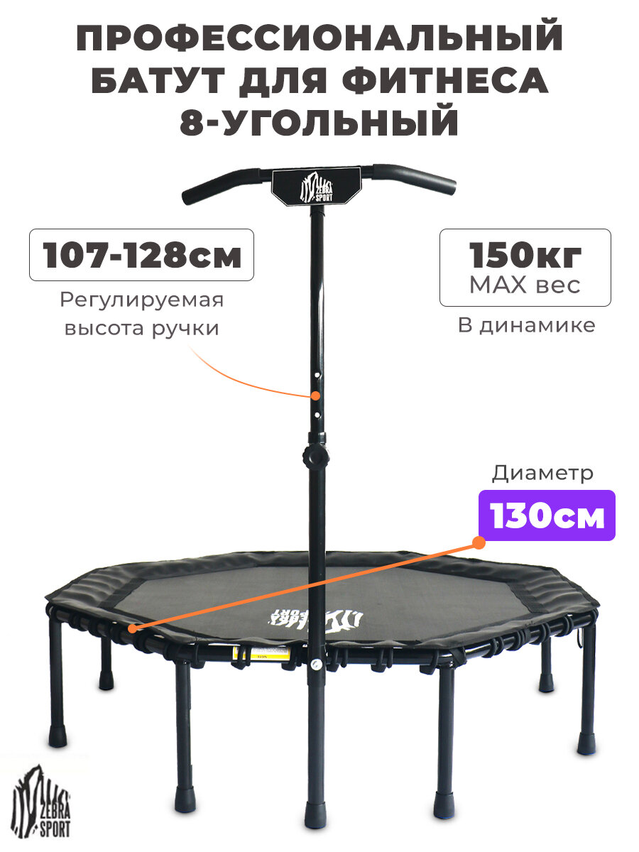 Батут профессиональный для фитнеса 8-угольный с ручкой черный интересное: