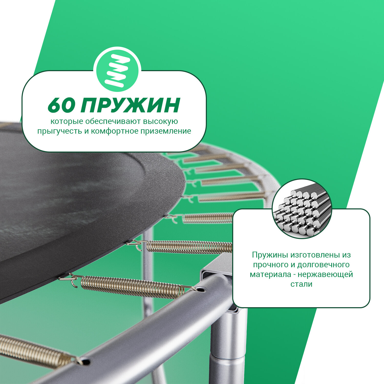| Особенности | W-образные опоры / защита пружин / с защитной сеткой / с лестницей |