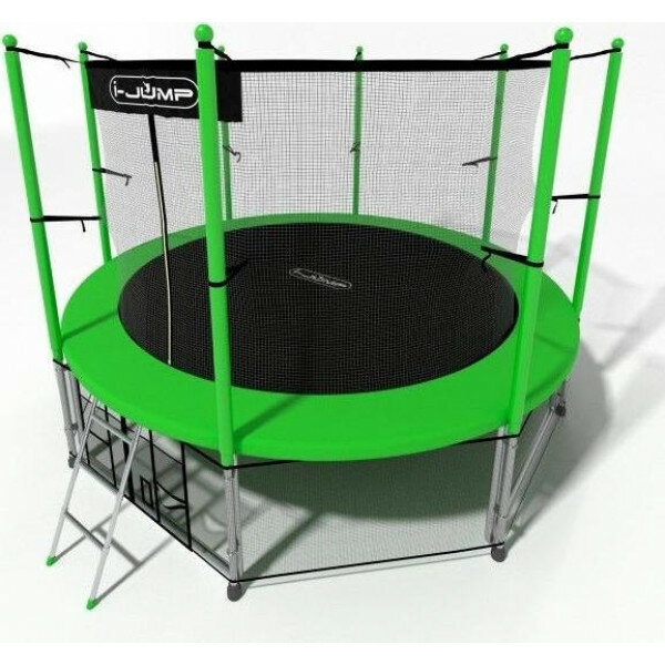 Купить Батут i-JUMP CLASSIC 12FT с защитной сеткой и лестницей для дачи (зеленый)