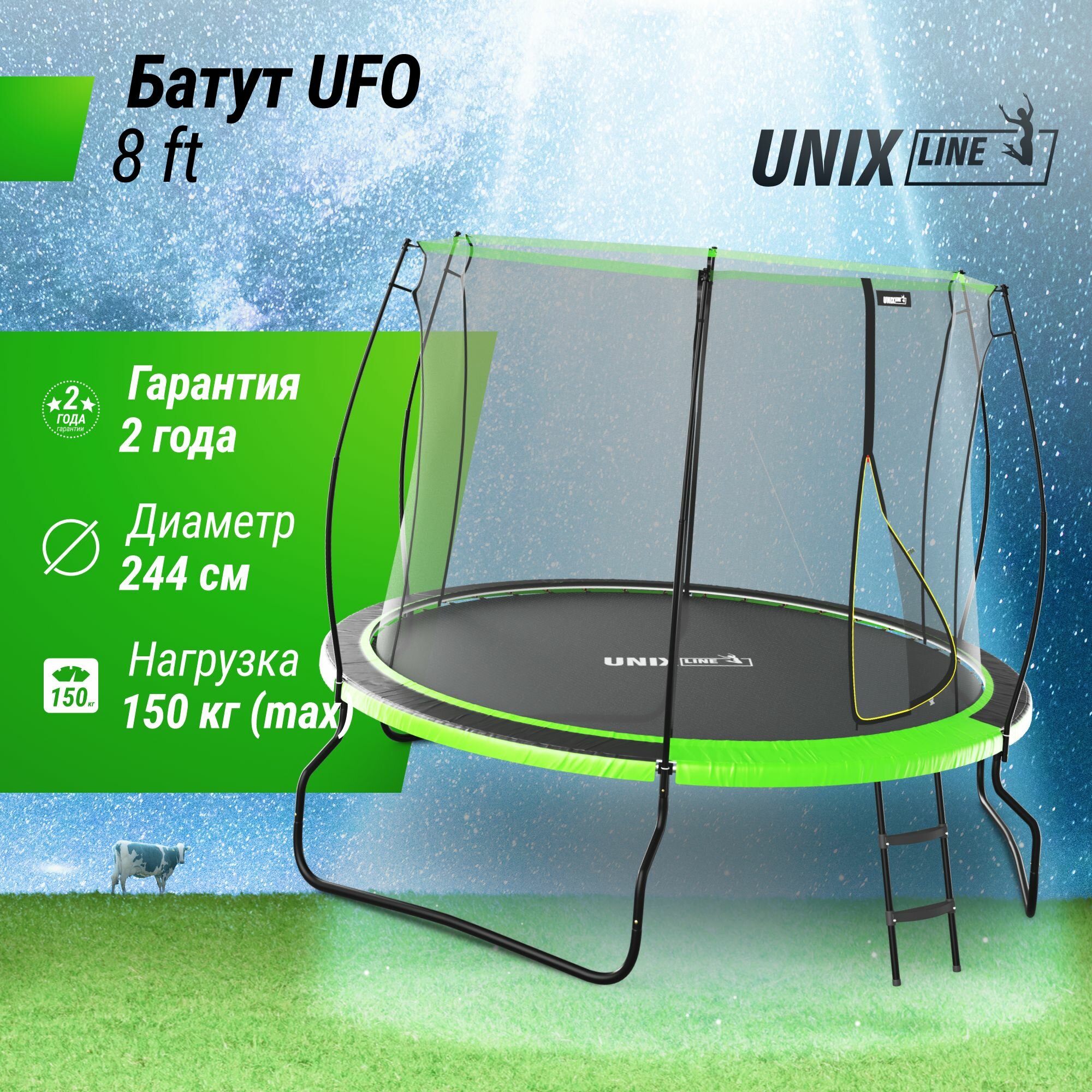 Батут каркасный UNIX Line UFO 8 ft Green, диаметр 244 см, до 150 кг, с внутренней защитной сеткой, для дома и улицы