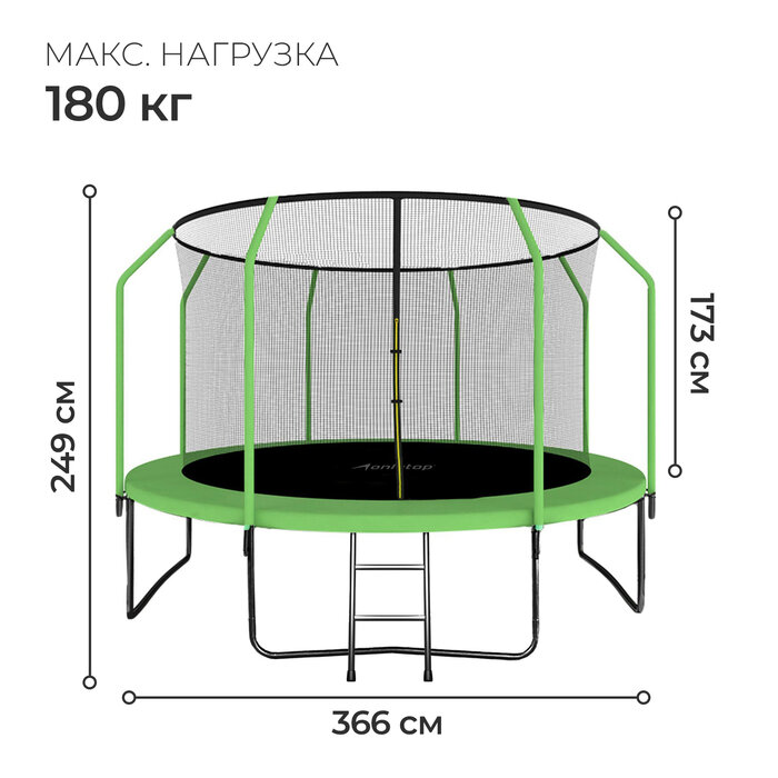 Батут 366 см, высота сетки h=173 см, цвет зеленый ONLITOP 5392844 .