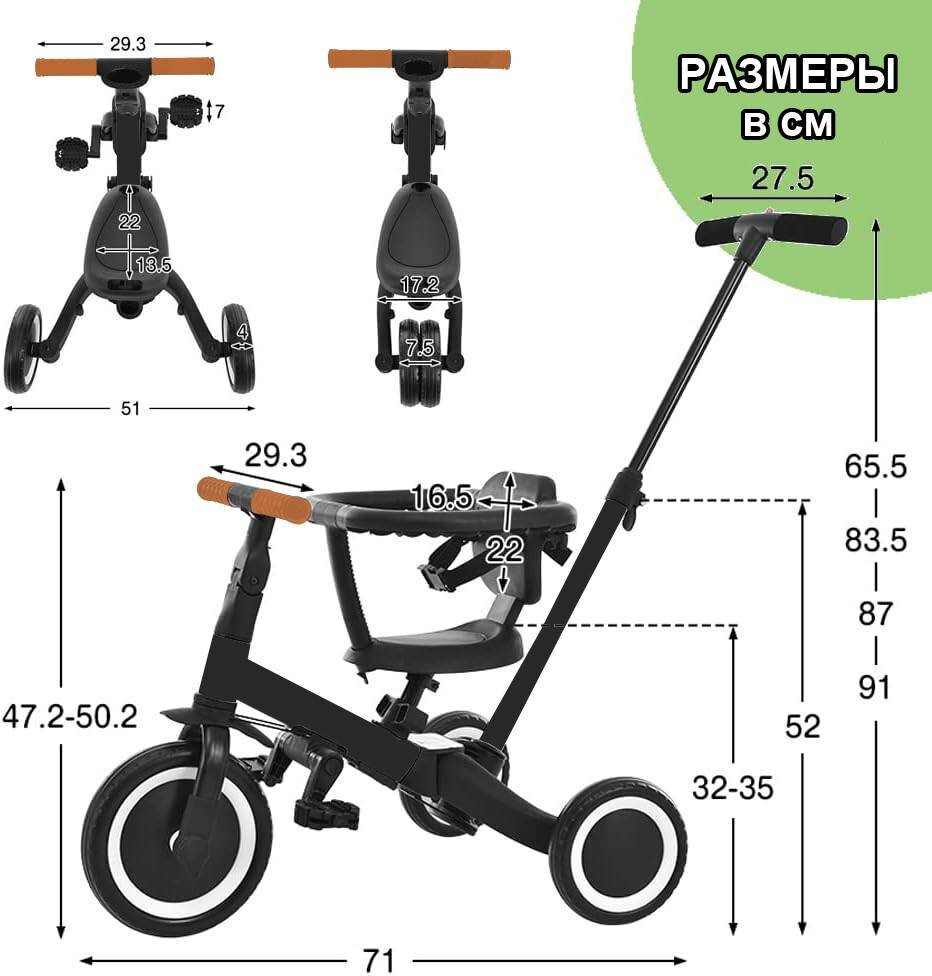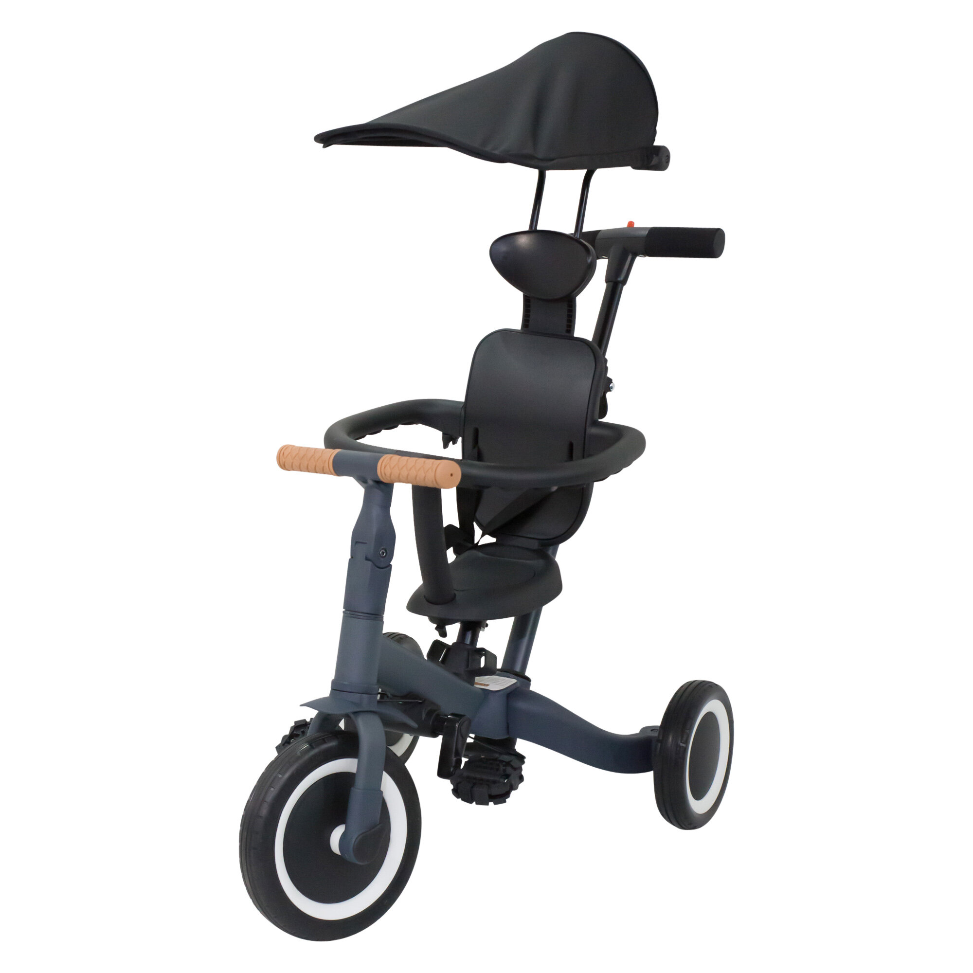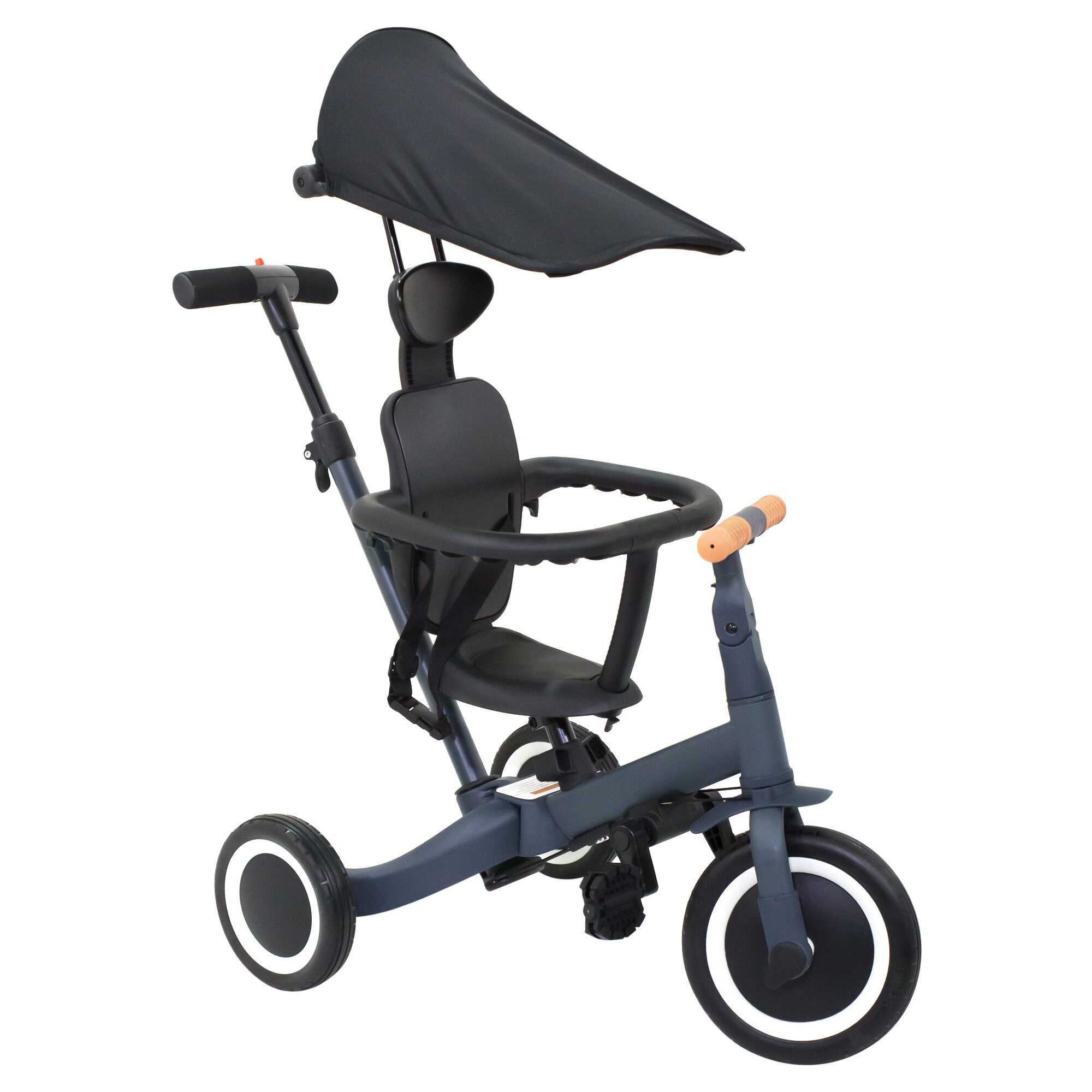 Детский беговел-велосипед 8в1 с крышей и ручкой, темно-серый - TR008C-DARK-GREY интересное: