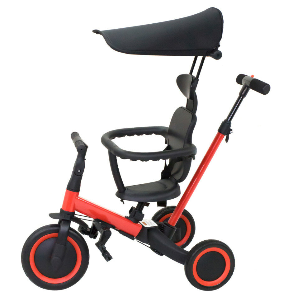 Купить Детский беговел-велосипед 8в1 с крышей и ручкой, красный - TR008C-RED