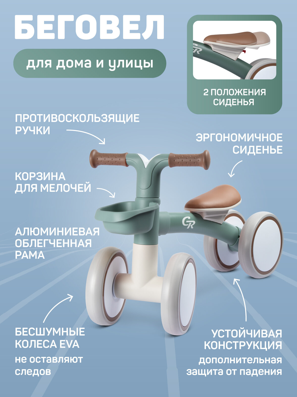 Беговел четырехколесный City-Ride для малышей, CR-BB-01GN интересное: