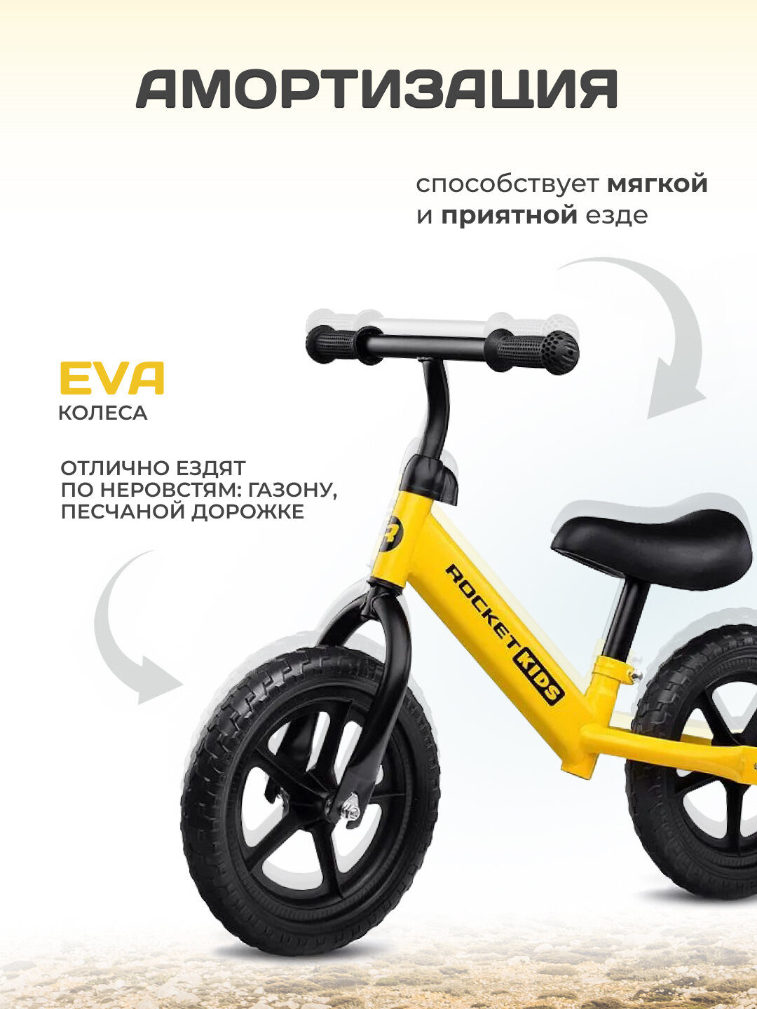 Купить Беговел детский двухколесный (самокат) Rocket R0044-Y, для детей возраста 2-4 года, колеса EVA, цвет желтый