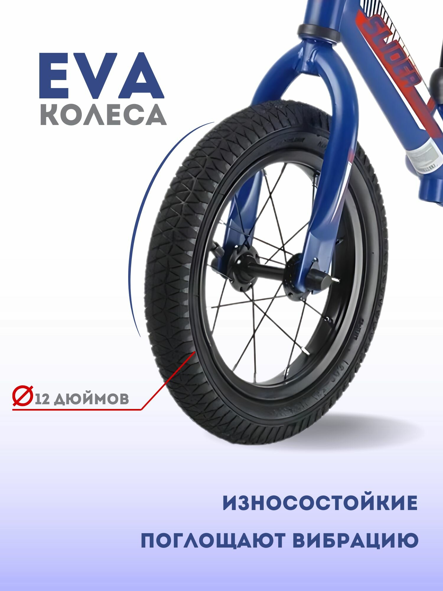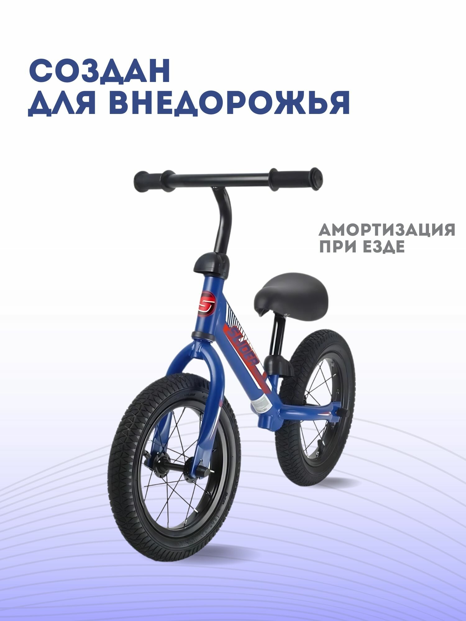 Беговел SLIDER "DJA107B", надувные колеса 12", сталь, регулировка руля и седла, синий