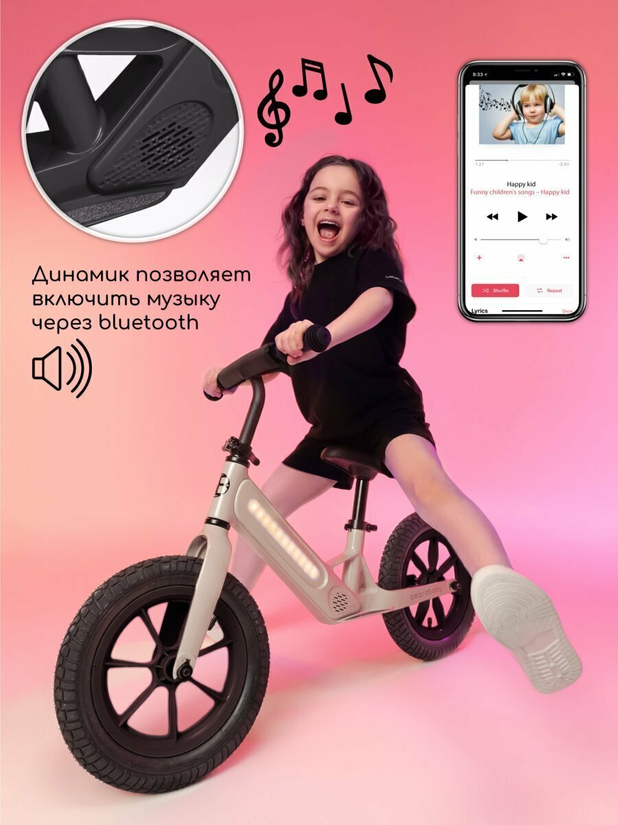 Детский двухколесный беговел Amarobaby Tune, с подсветкой и музыкой по Bluetooth, серый