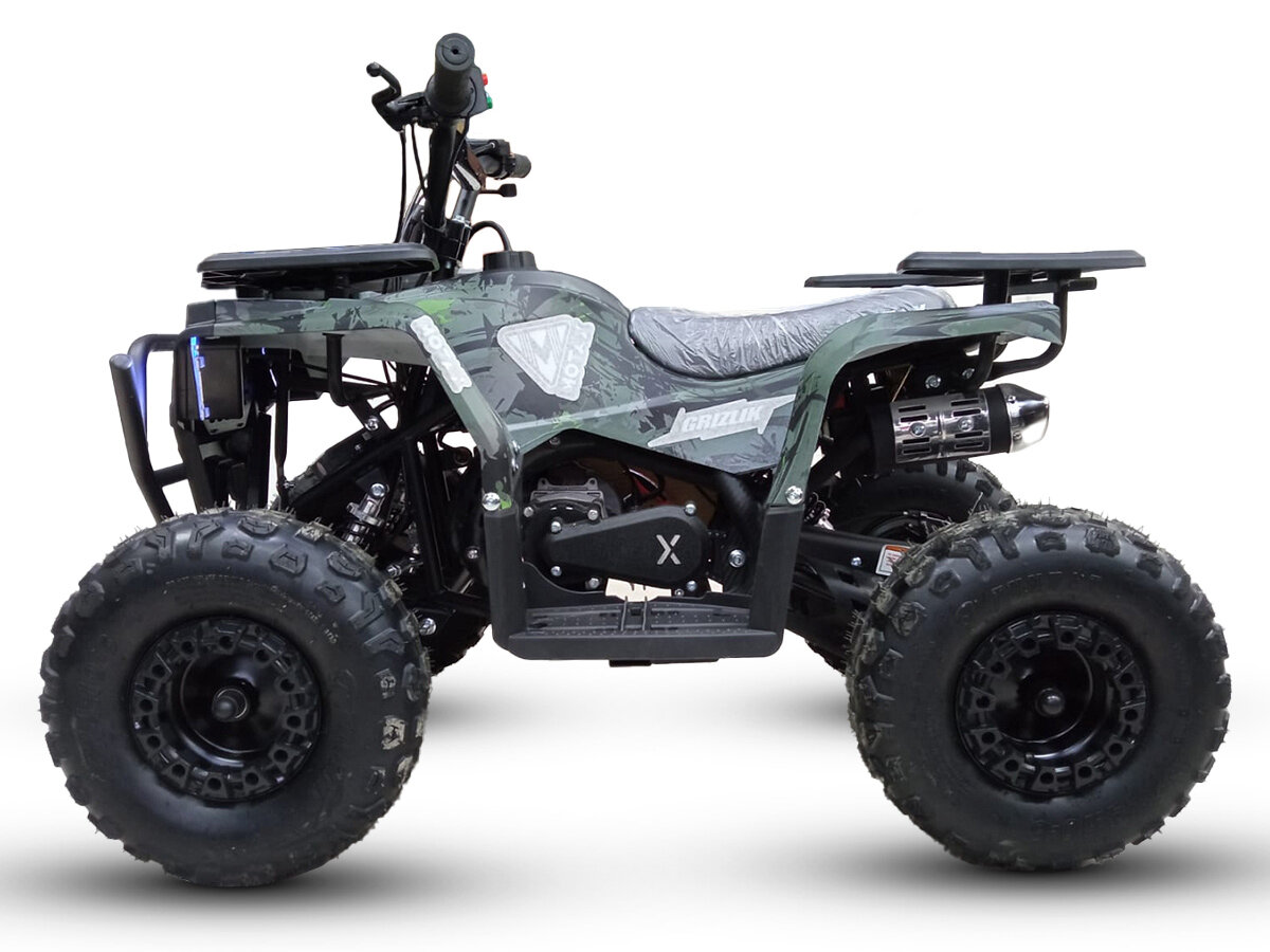Детский бензиновый квадроцикл MOTAX Grizlik Midi ЕS BW (большие колеса) с электростартером и родительским пультом, зеленый камуфляж интересное: