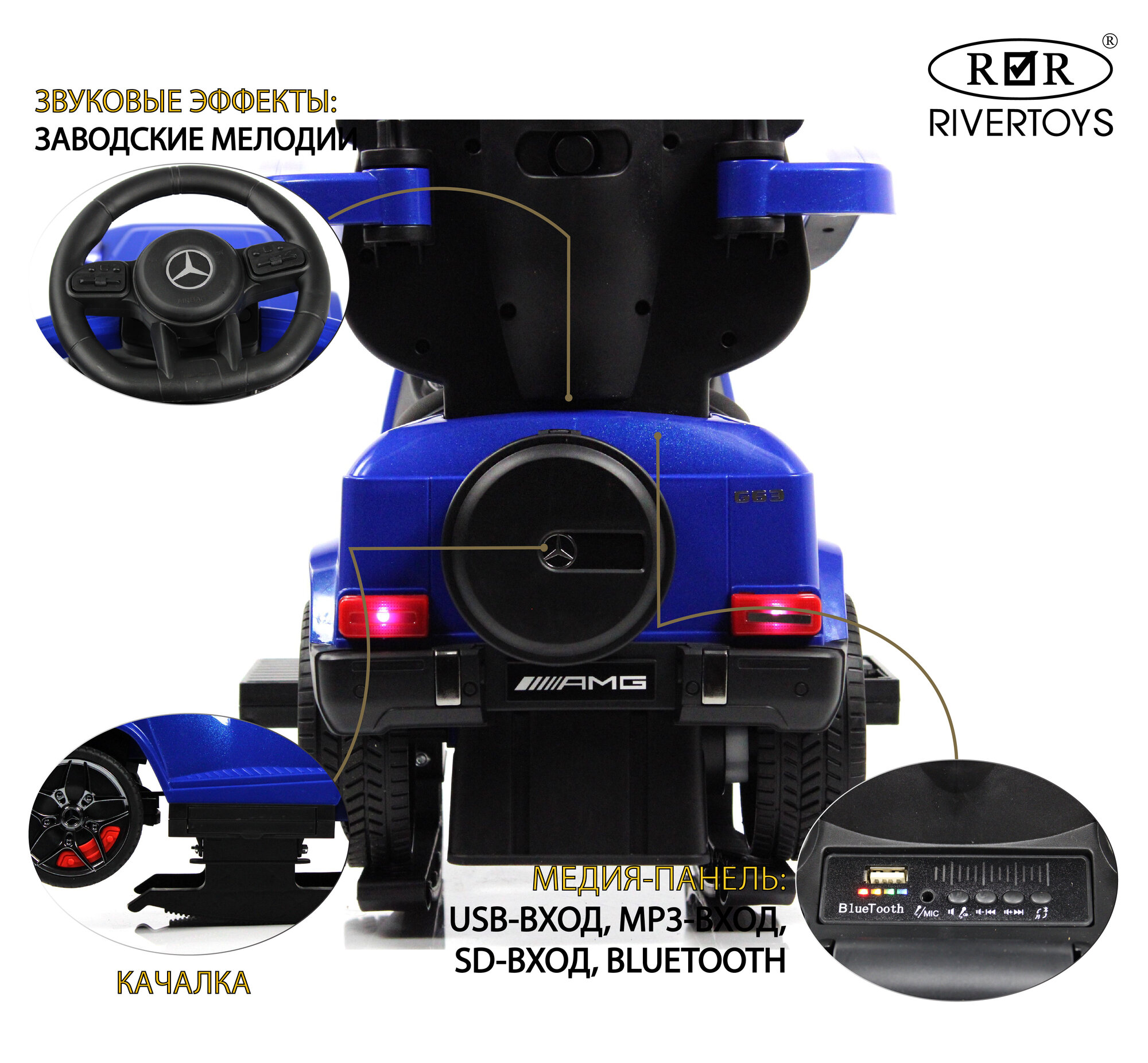 СохранитьRiverToys Детский толокар Mercedes-Benz G63 (Z001ZZ-A) синий бриллиант интересное: