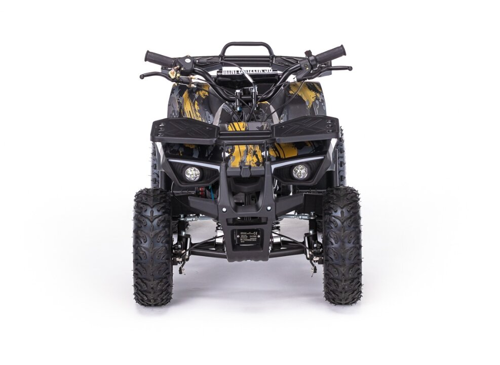 Купить Детский бензиновый квадроцикл MOTAX GRIZLIK MINI ES BW (большие колеса) с электростартером и родительским пультом, цвет желтый камуфляж