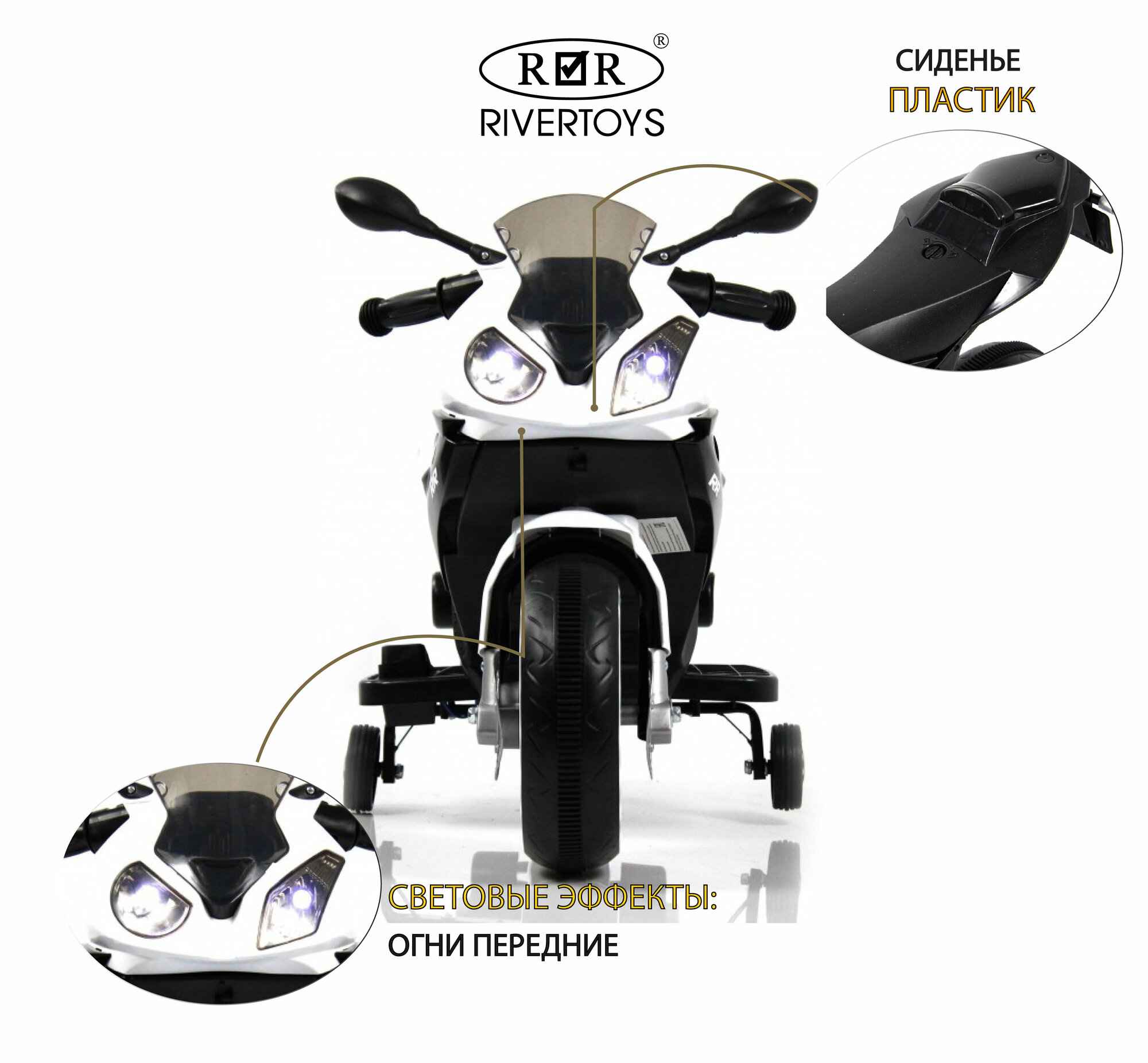 Детский электромотоцикл X002XX черно-белый интересное: