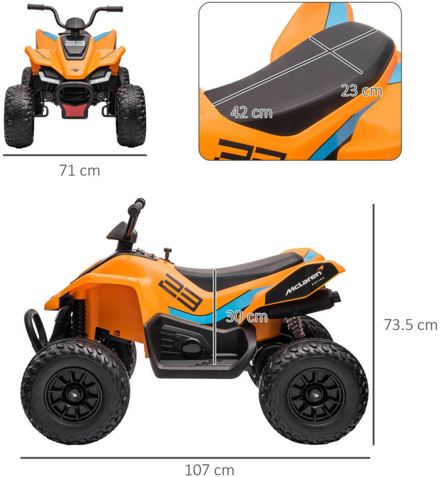 Детский квадроцикл MCLAREN MCL 35 LIVERIES 12V (полный привод, EVA) - JL212-ORANGE интересное: