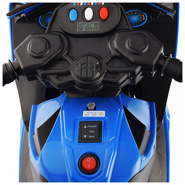 Детский электромотоцикл свет фар, музыкальные мелодии, сигнал клаксона и звук сирены. "Байк",1 мотор 20 ВТ, синий ROCKET интересное: