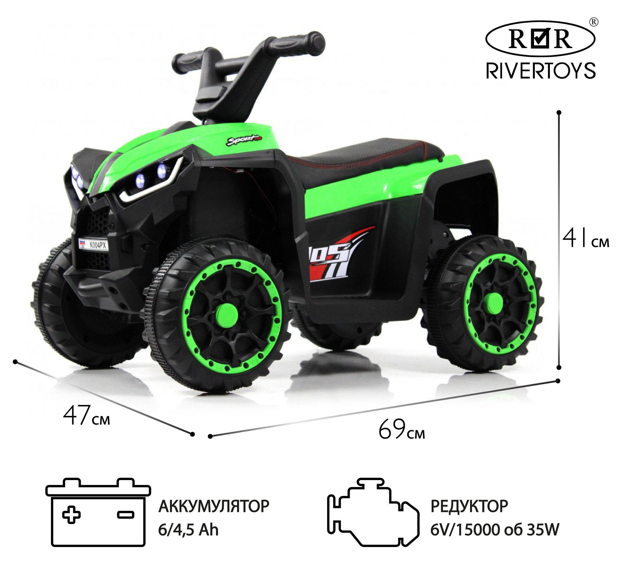 Купить RiverToys Детский электроквадроцикл K004PX зеленый