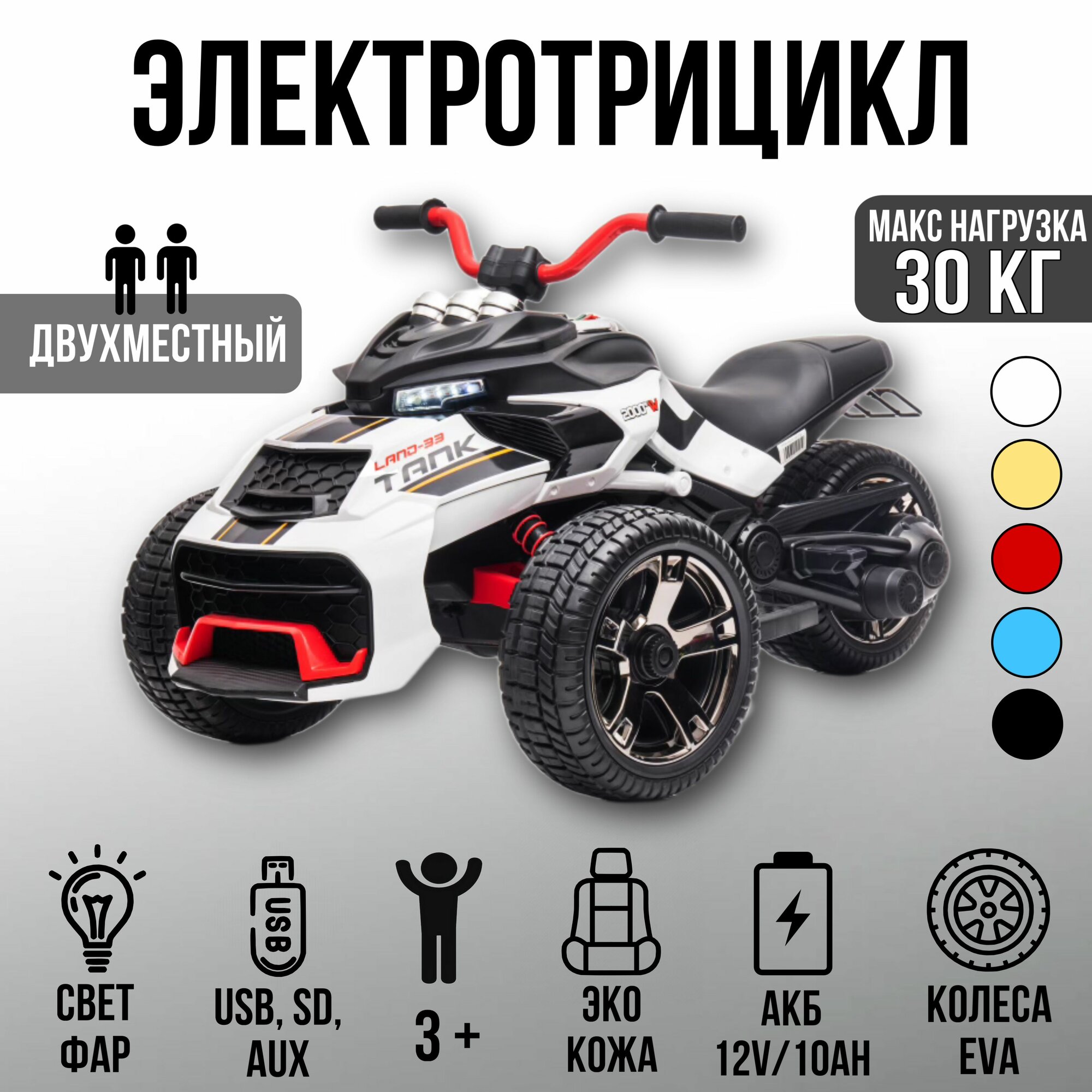 Электро трицикл детский 8069 белый интересное: