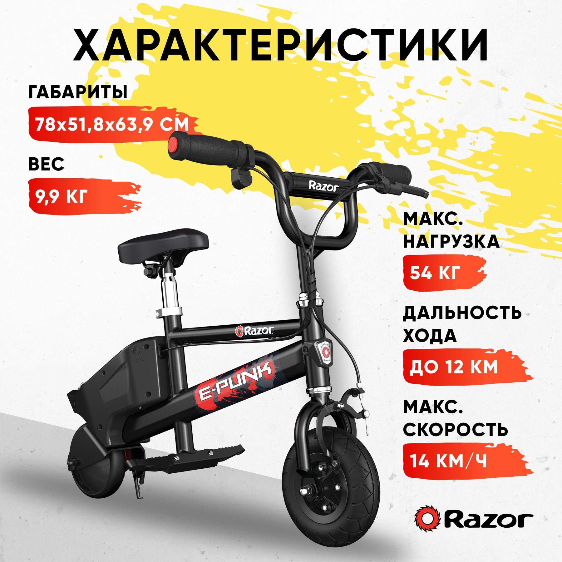 Купить Электро мини-байк Razor E-Punk (чёрный); супер мини электробайк для детей и подростков