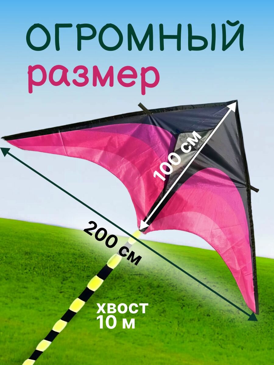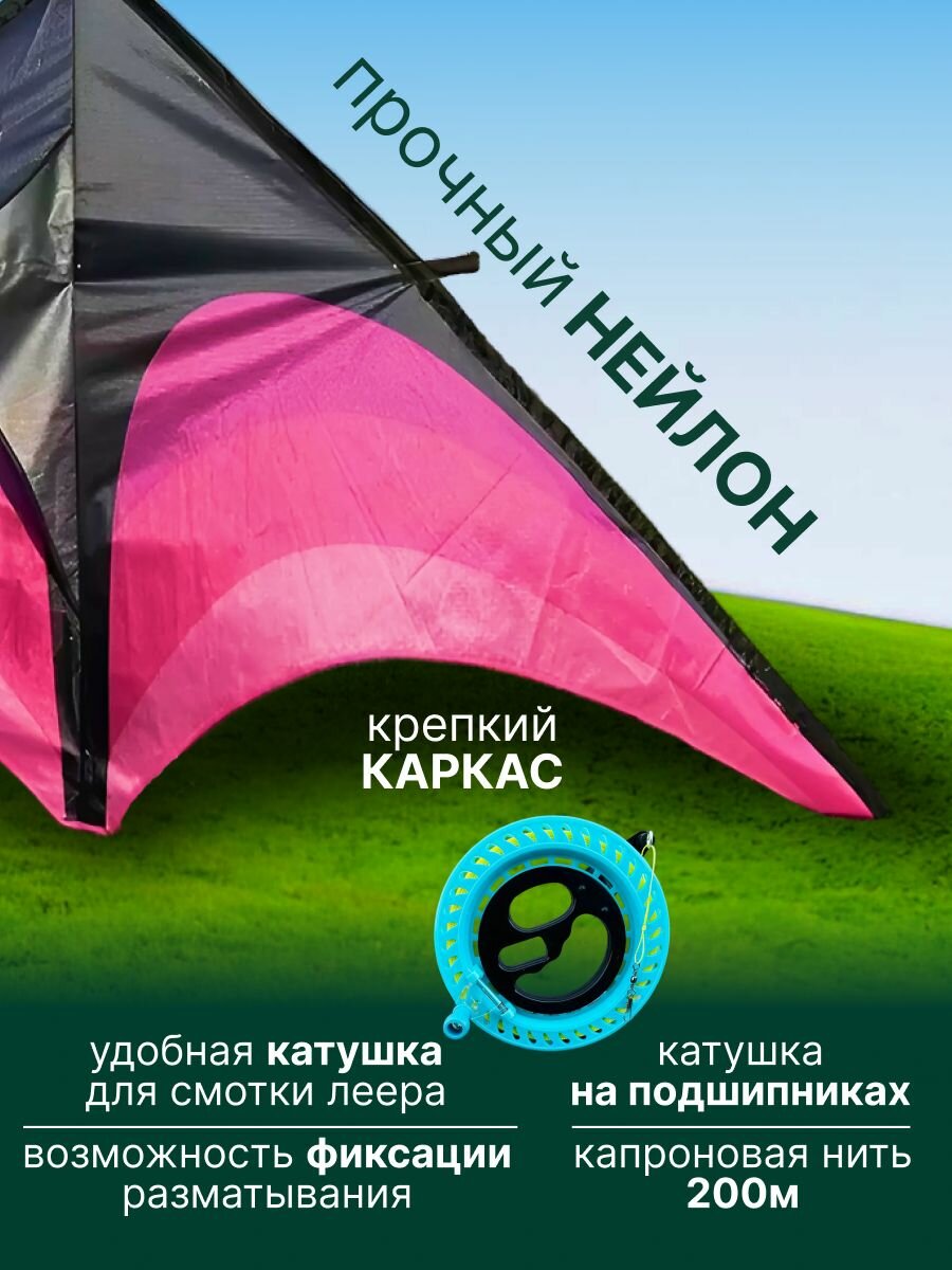 Воздушный змей 2 метра, катушка управления с леером 150 метров, цвет розовый интересное: