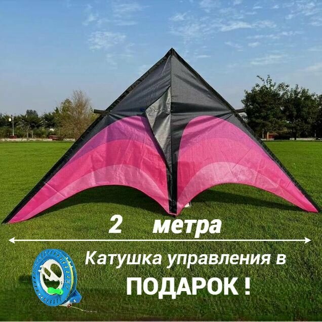 Купить Воздушный змей 2 метра, катушка управления с леером 150 метров, цвет розовый