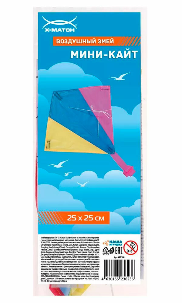 Воздушный Змей Мини-кайт, 25х25 см. X-Match 682108 интересное: