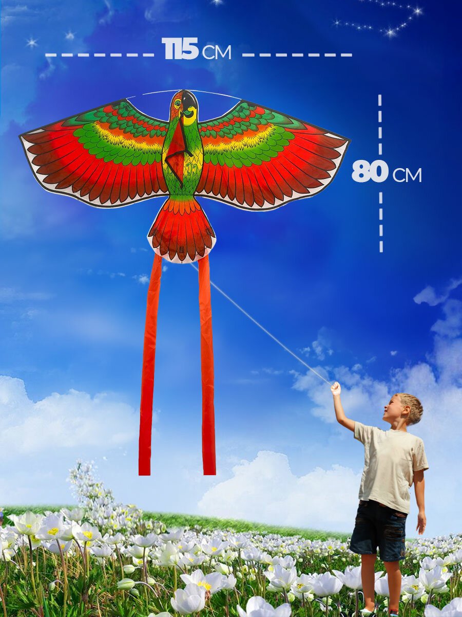Купить Воздушный змей Попугай 3D 115 см большой детский и взрослый