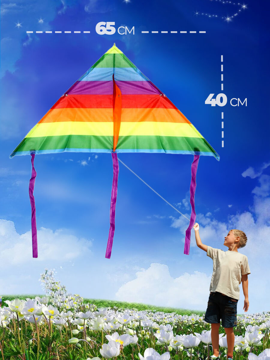 Купить Воздушный змей Радуга 65 см большой детский и взрослый