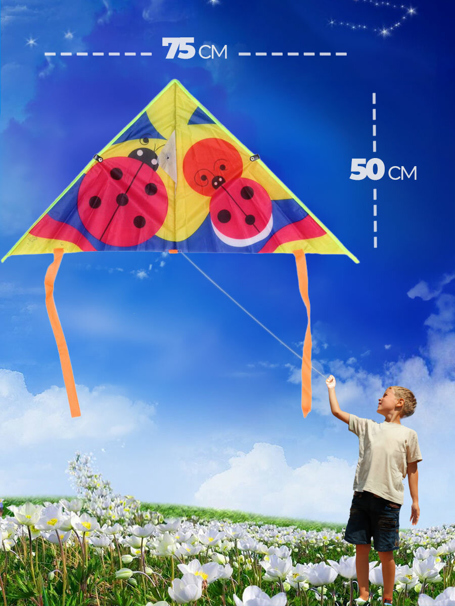 Купить Воздушный змей Божья Коровка 75 см большой детский и взрослый