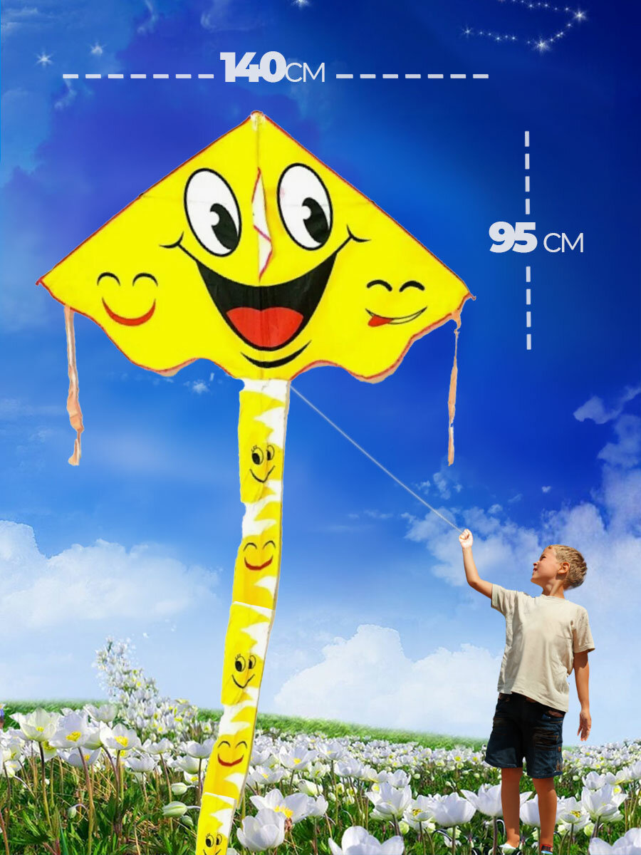 Купить Воздушный змей смайлик 140 см большой детский и взрослый