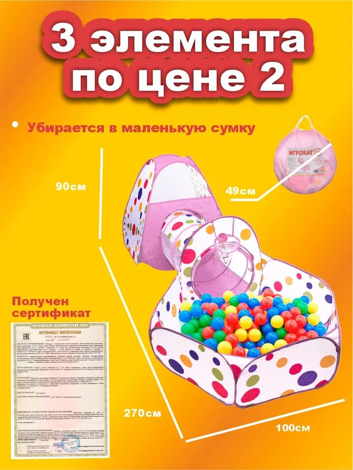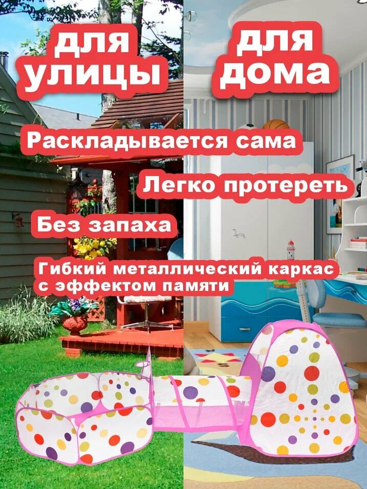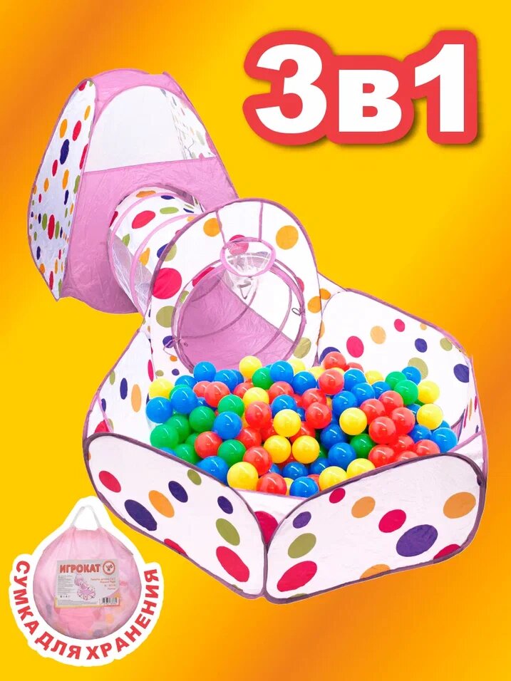 СохранитьПалатка детская 3 в 1 Игрокат Рури XL с тоннелем и манежем бело-розовая, вигвам детский, палатка игровая интересное: