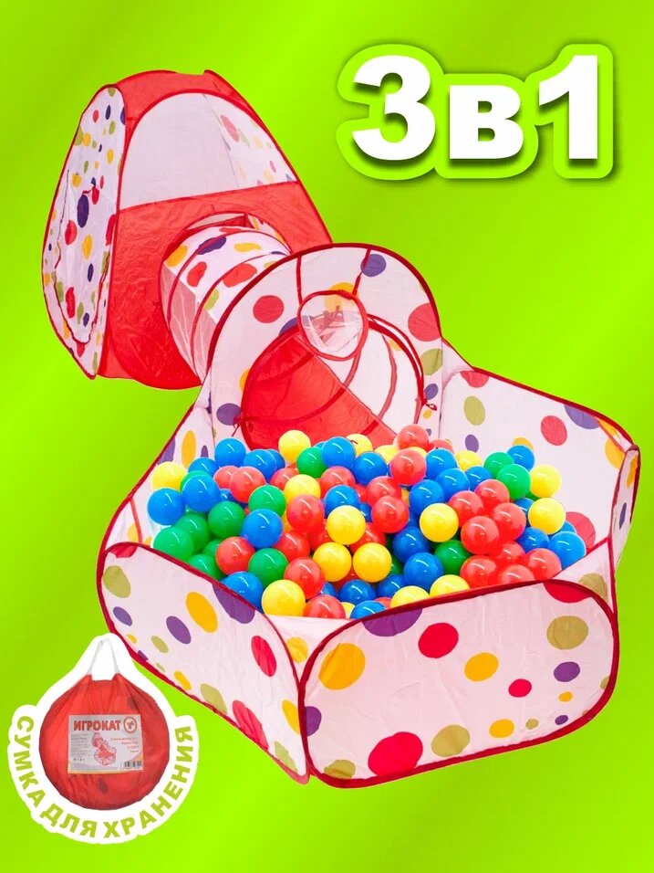 Купить Палатка детская 3 в 1 Игрокат Рури XL с тоннелем и манежем красно-белая, вигвам детский, палаткаигровая