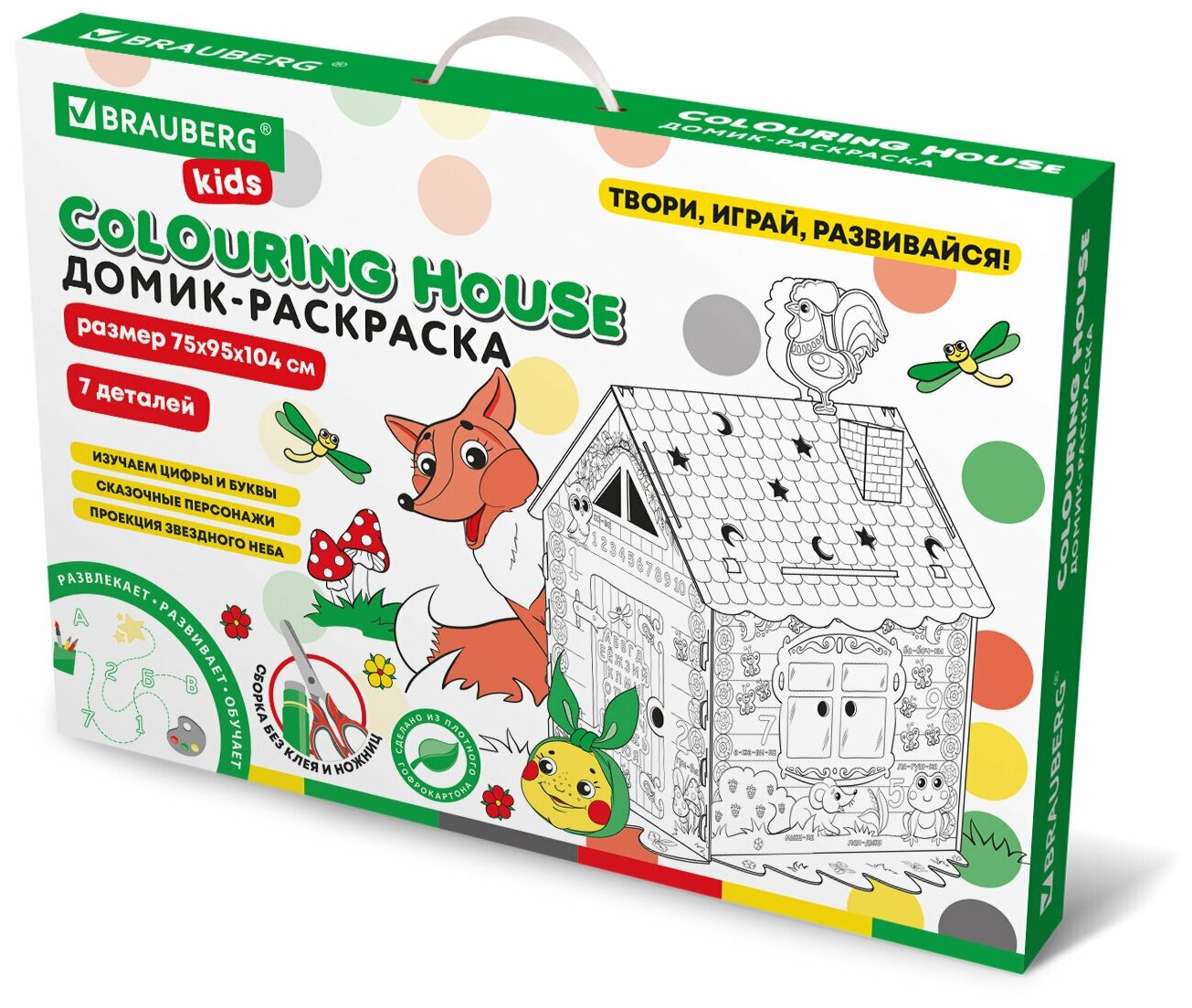 Картонный игровой развивающий Домик-раскраска "Сказочный", высота 130 см, BRAUBERG Kids интересное: