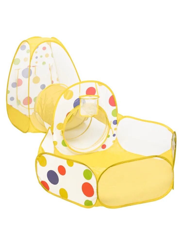 Купить Детская палатка с туннелем, палатка с туннелем 3 в 1, палатка с сухим бассейном и туннелем (желтая)
