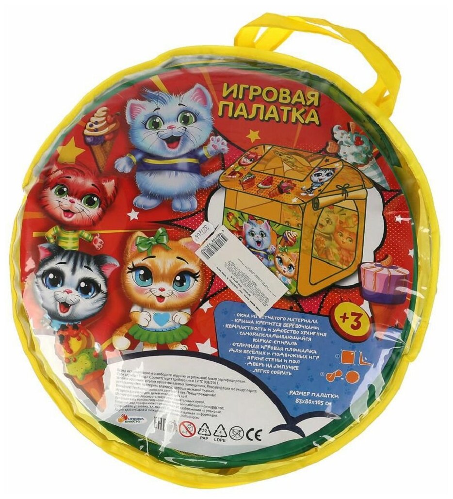 Купить Палатка детская игровая "Коты" 83х80х105см, в сумке