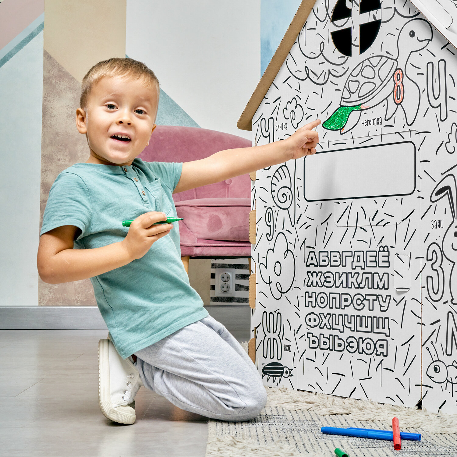 | Дополнительная информация | развивающий домик раскраска, личное пространство для ребёнка, игровой домик из картона |