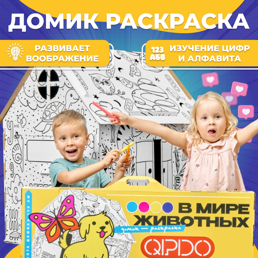 Купить Картонный развивающий домик раскраска. Домик из картона для детей. Дом раскраска для ребёнка
