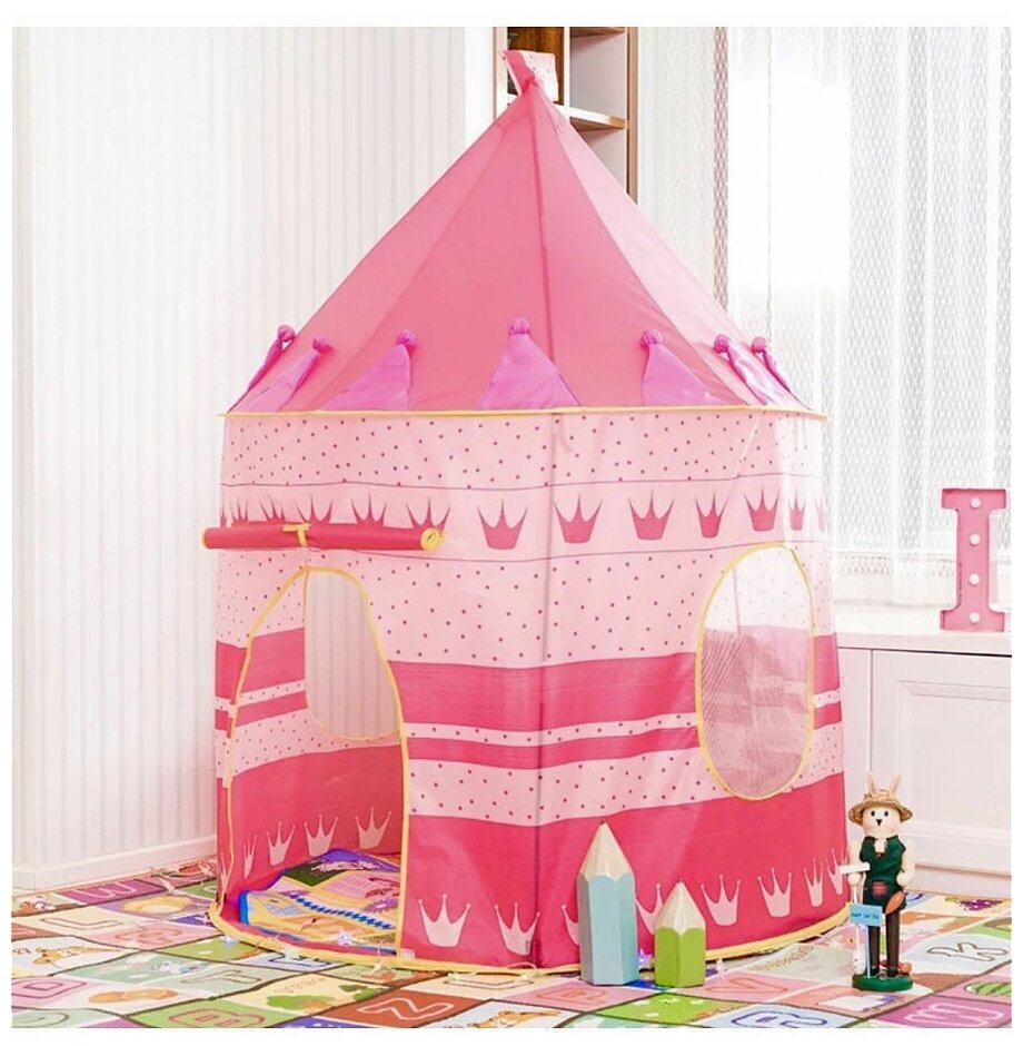 Купить Детская игровая палатка Замок принца и принцессы / палатка детская / шатер детский / домик детский игровой / 105х105х135 см / розовый