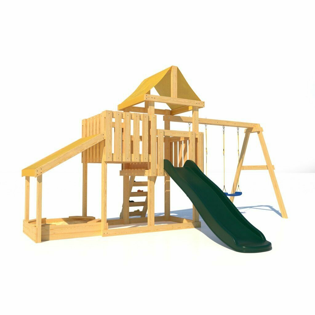 | Комплектация | Комплектация Деревянный игровой домик Тентовая крыша Качельная балка Балкон Песочница с навесом Лестница с зацепами для скалодрома Горка пластиковая двухслойная с двойной волной 1753 мм (Бельгия) Качели без спинки - 2 шт (Бельгия) Без пропитки Шаблон для сверления отверстий Инструкция по сборке |
