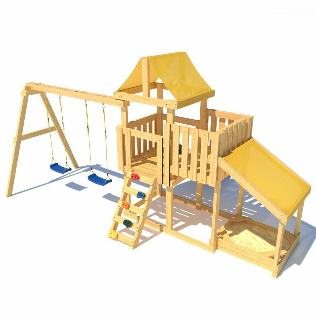 | В комплекте | домик, качели, лестница, песочница, скалолазная стенка |