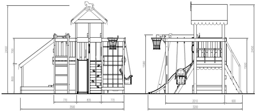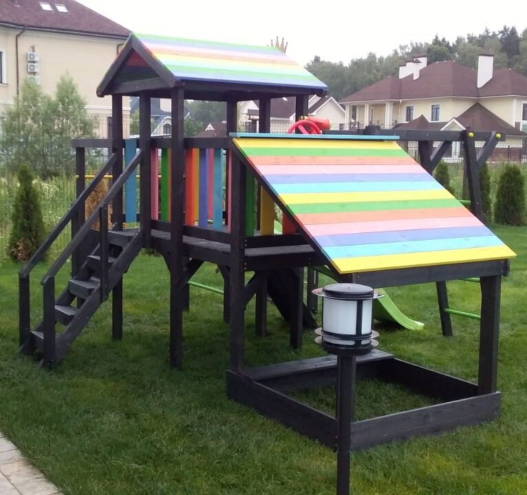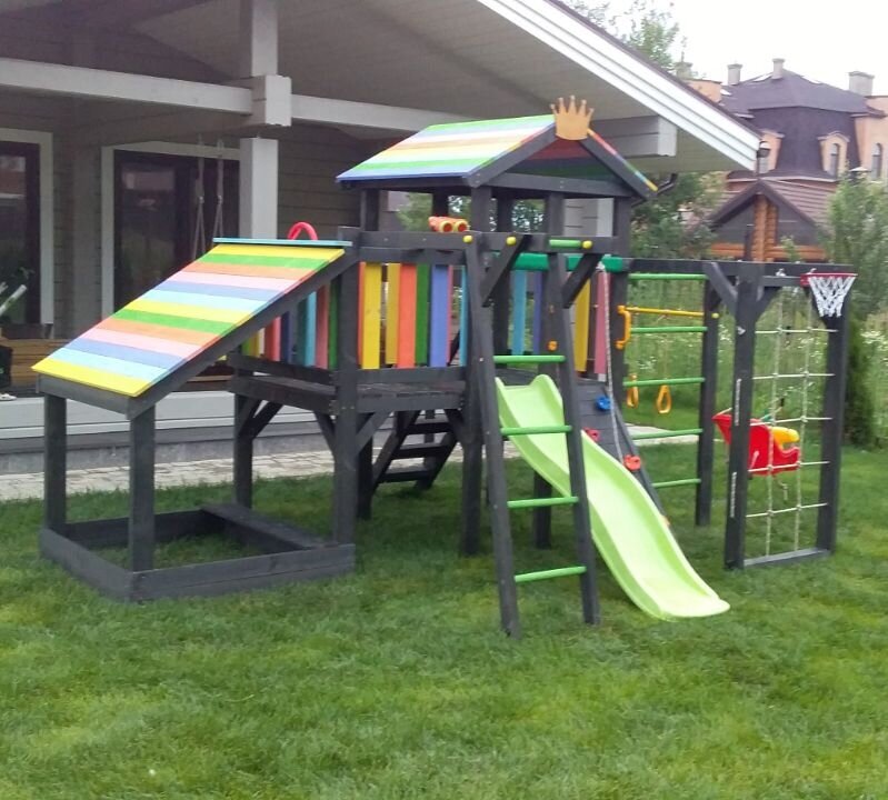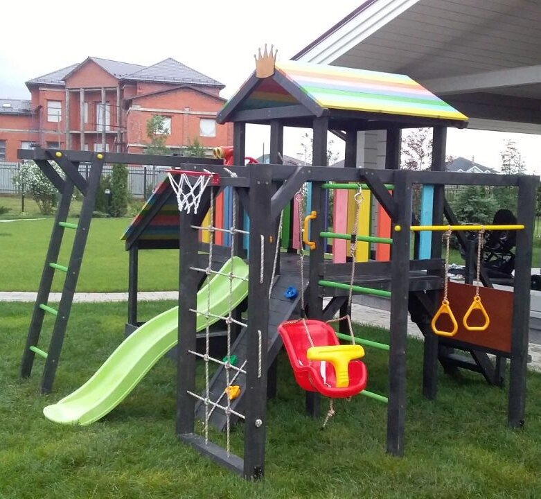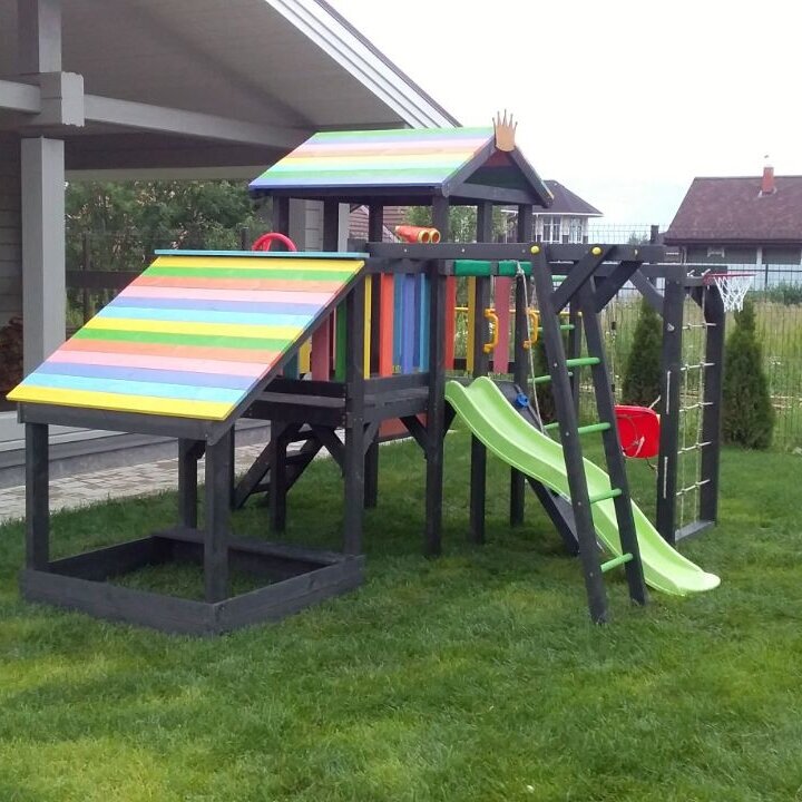 | В комплекте | баскетбольное кольцо, гимнастические кольца, горка, домик, канатный лаз, качели, лестница, меловая доска, песочница, рукоход, сетка для лазания, скалолазная стенка, турник |