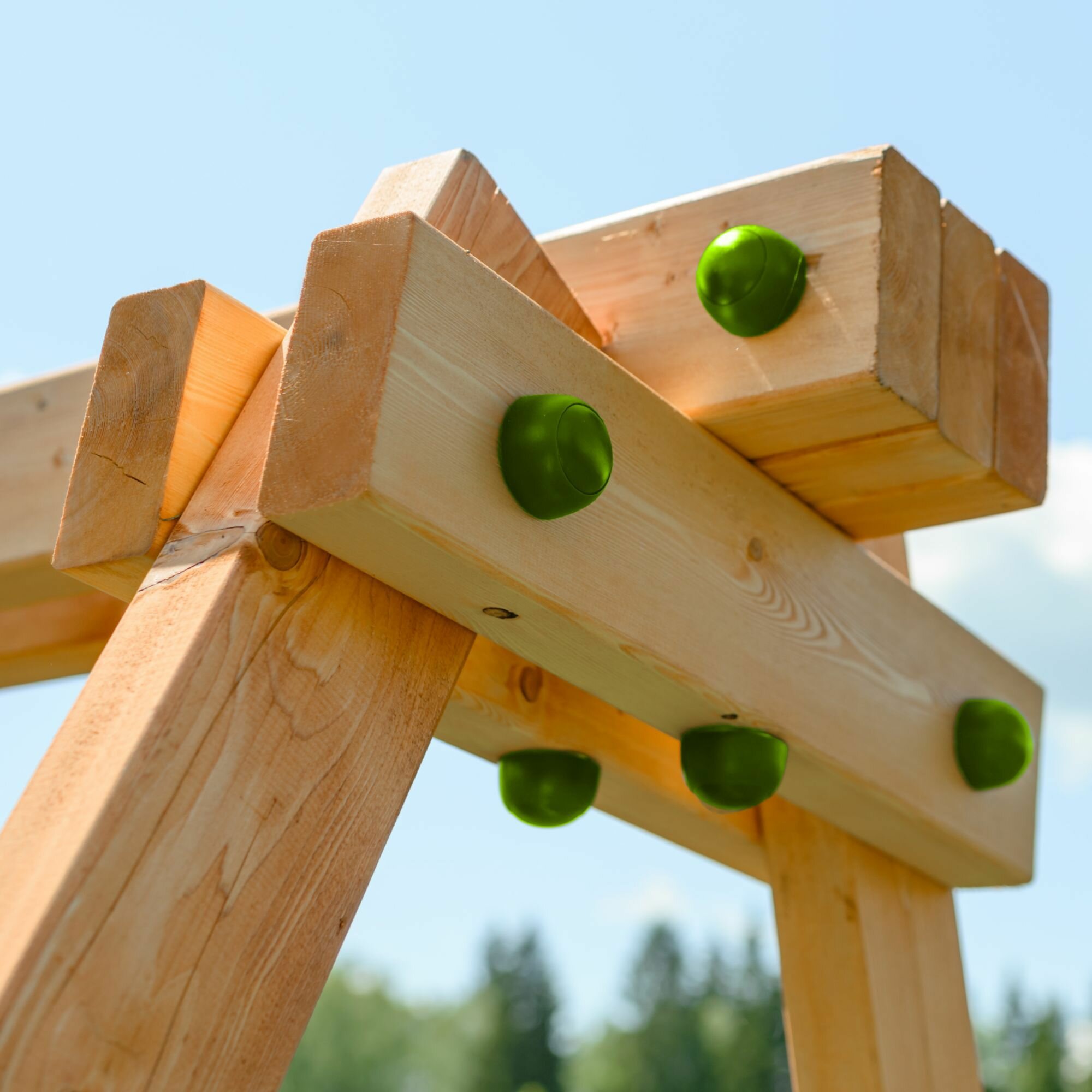 | Комплектация | Волнистая горка, Домик, Качели, Крыша, Лестница, Лестница веревочная, Перекладина, Песочница, Скалодром, Телескоп, Штурвал. |