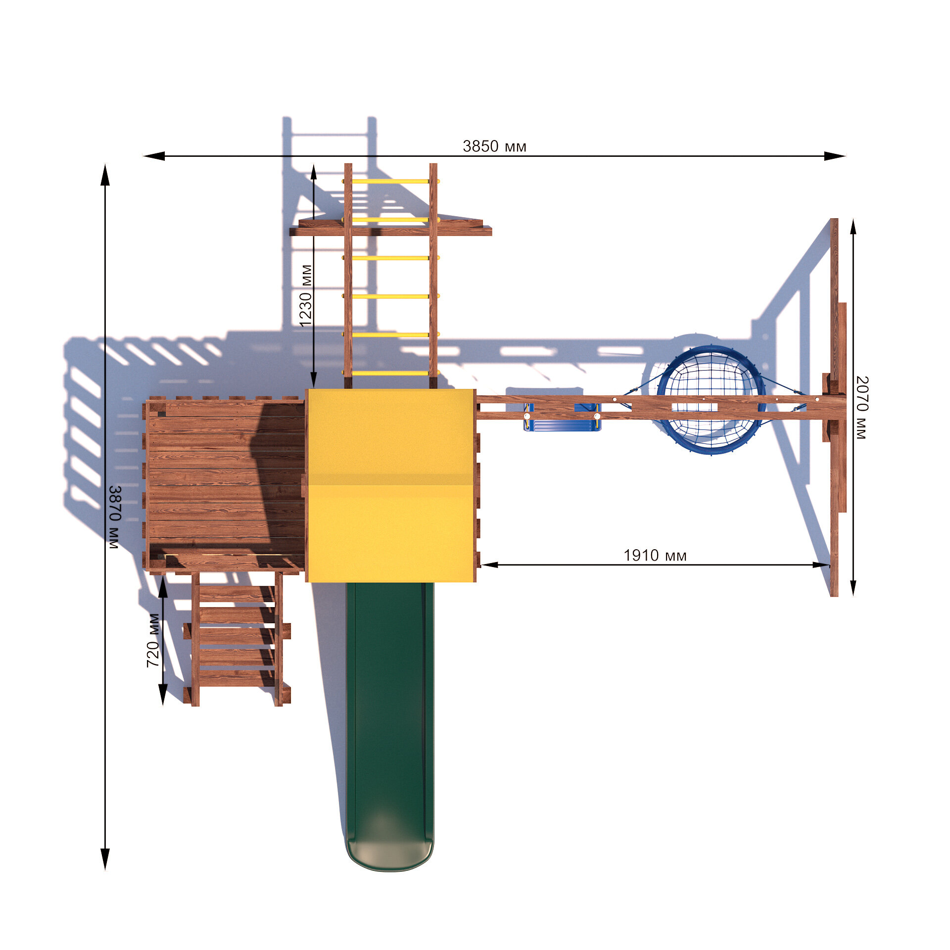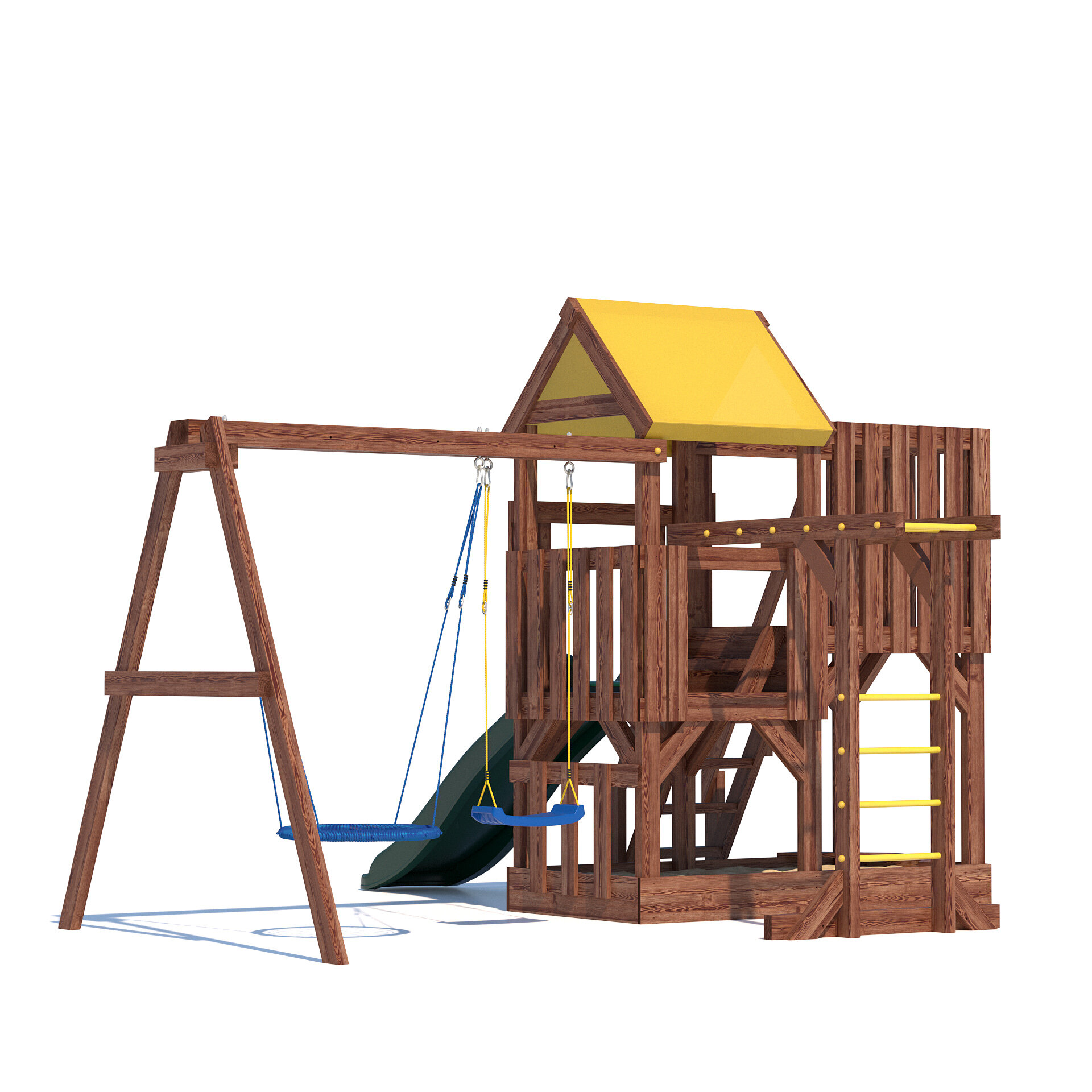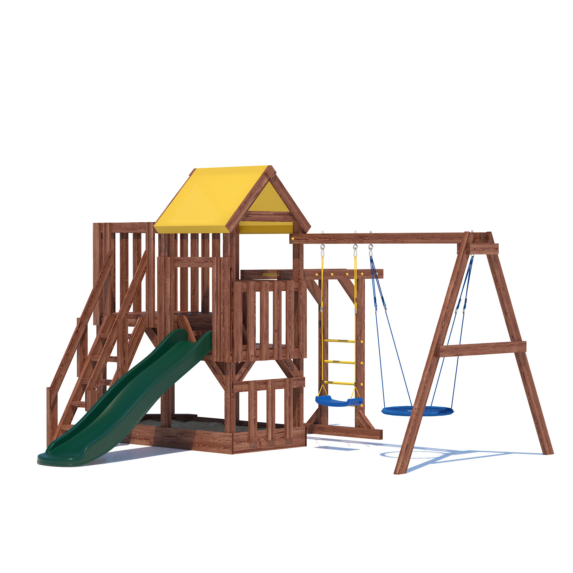 | В комплекте | домик, качели, лестница, рукоход |